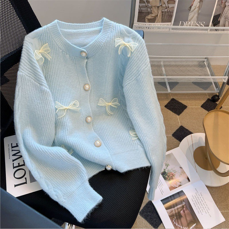 LULU Cardigan Rajut Wanita Knit Motif Pita Ribbon Coquette Style Korea Cantik 3666M