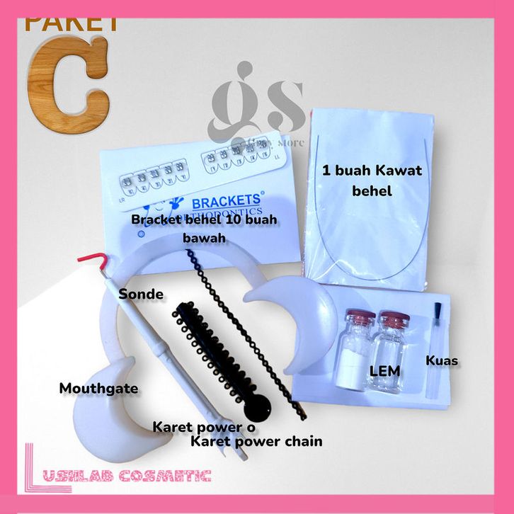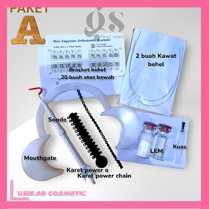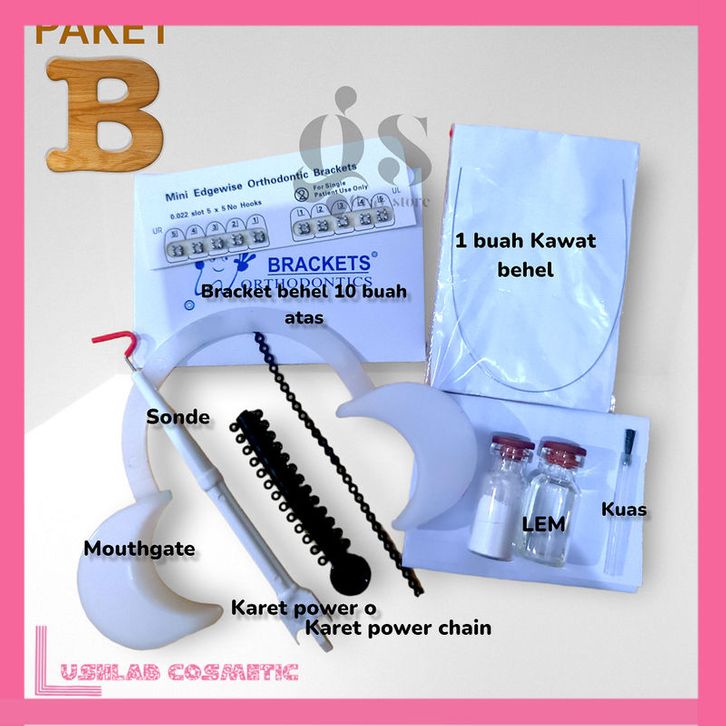 Paket Behel 1 Set Lengkap sama Lem Sonde Pembuka Mulut free 2 Karet Behel Request Warna Tahan Lama