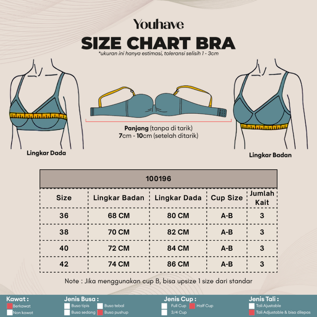 You’ve ( YouHave ) BH Bra Seamless Lembut Half Cup AB Busa Sedang Push Up Kawat Kait 3 Bra Remaja Harap Up Size Tali Bisa Dilepas 100196
