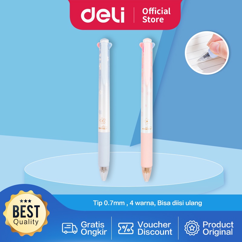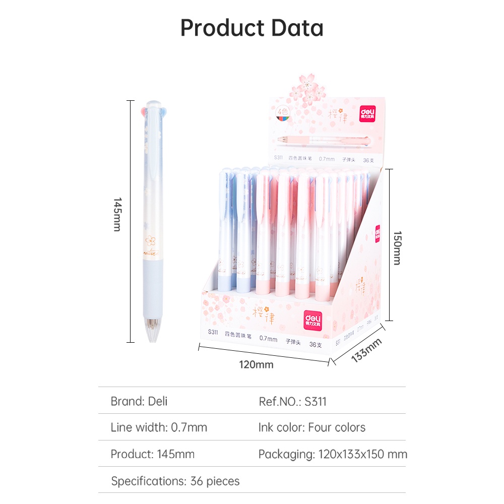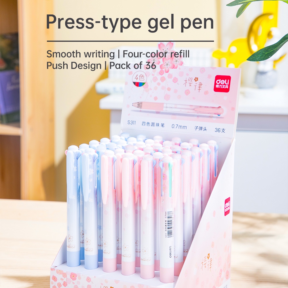 Deli Pulpen Retractable Sakuraru Series Lucu Bullet tip 0.7mm 4 warna S311