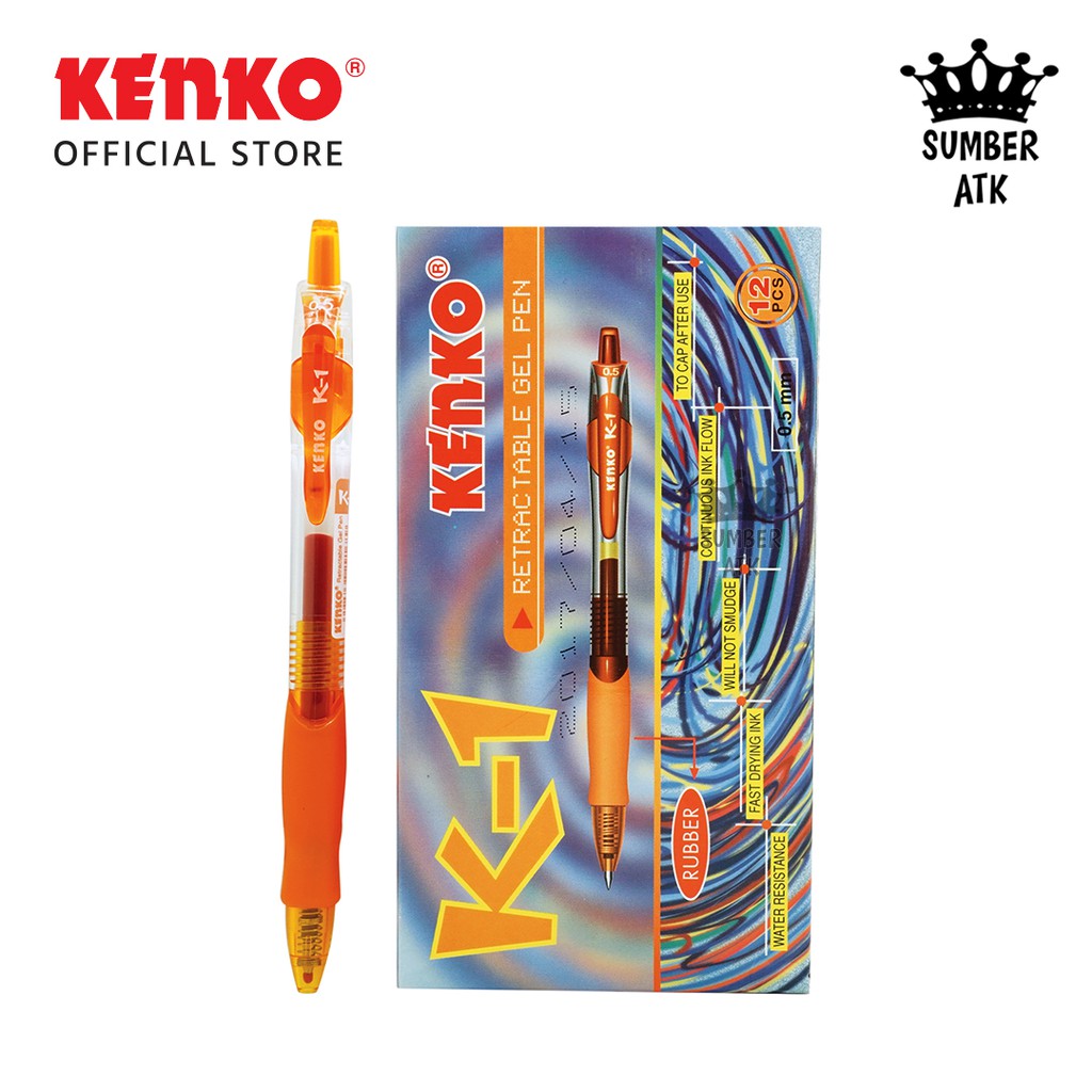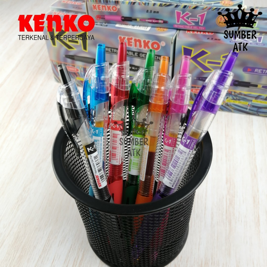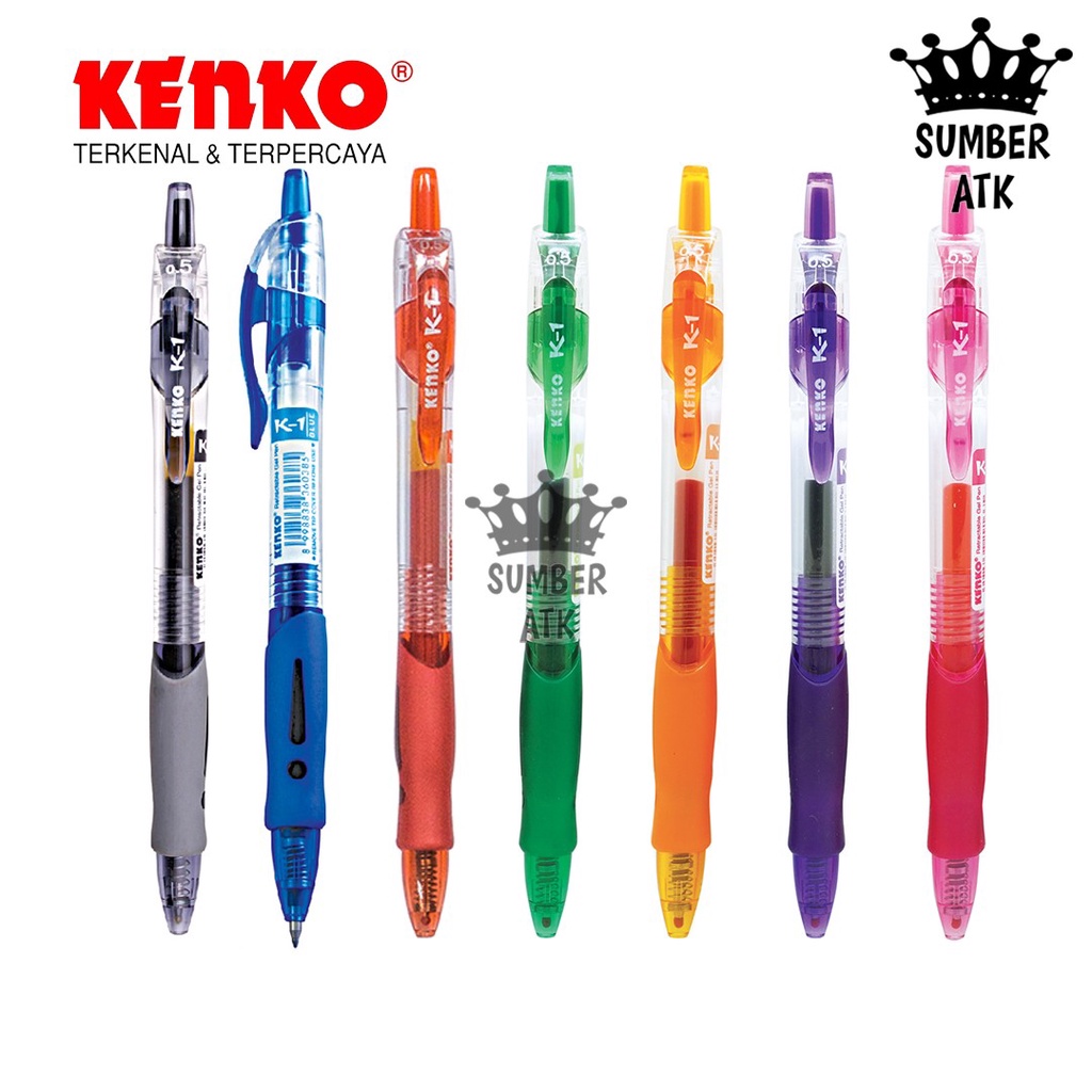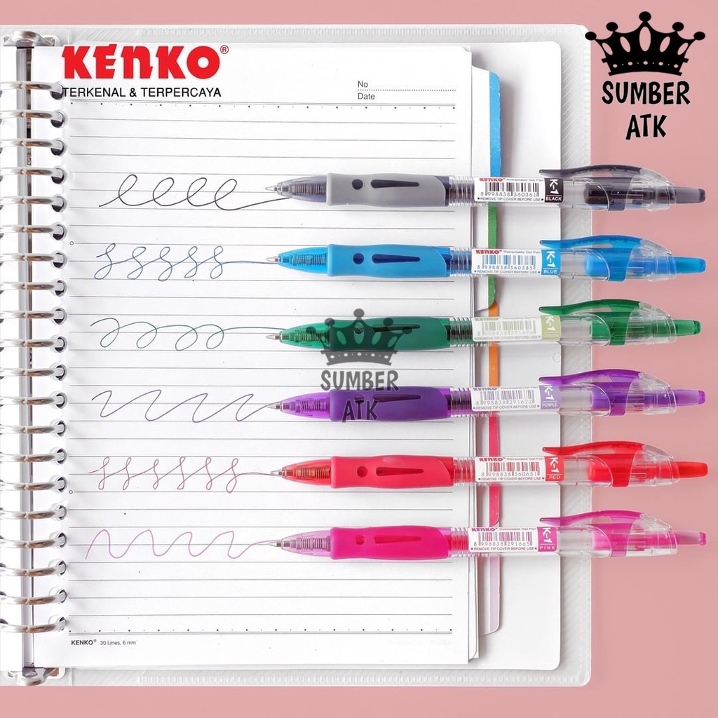 GEL PEN K-1 K1 KENKO Retractable Hitam , Biru , Merah , Pink , Hijau , ungu , orange Pena / Pulpen