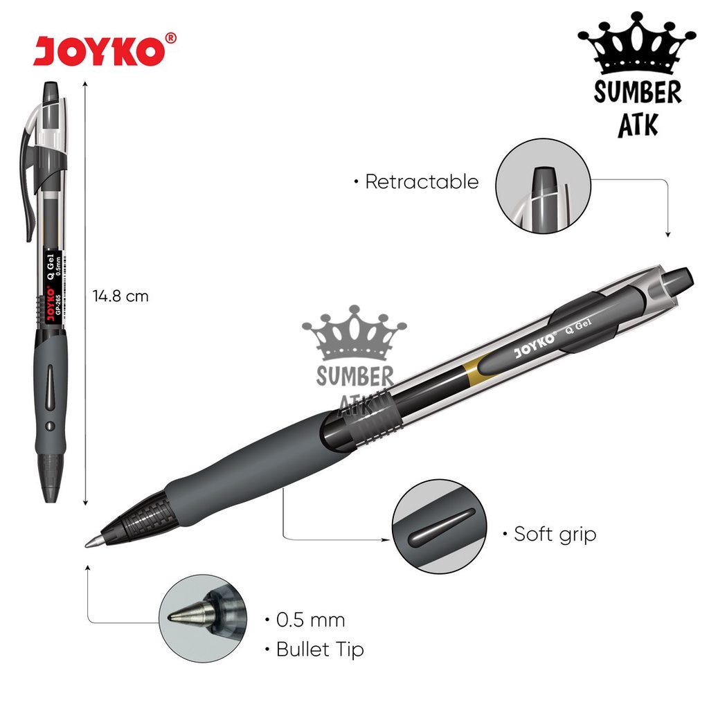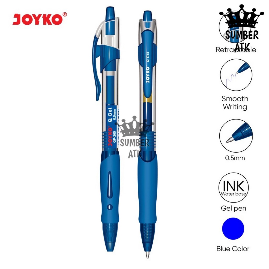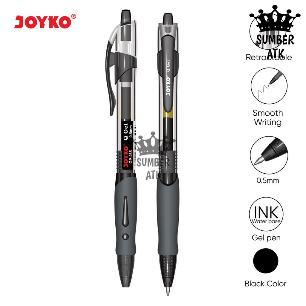 Gel Pen Pulpen Pena Joyko GP-265 Black / Blue / Red Q Gel 0.5 mm - 1 PCS