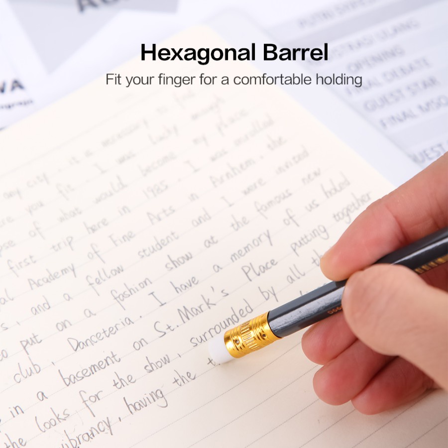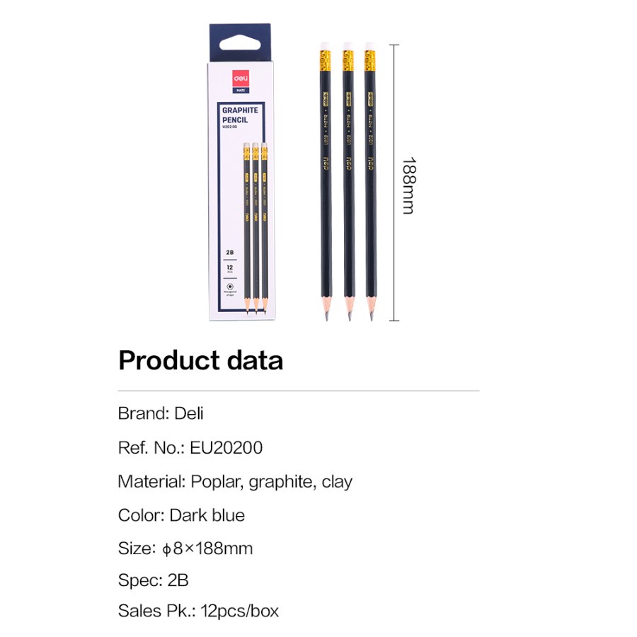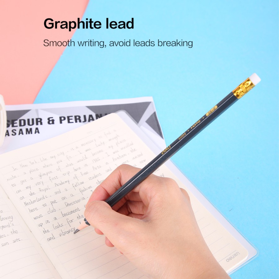 Deli Graphite Pensil hitam pekat dengan penghapus bebas PVC tidak beracun EU20200