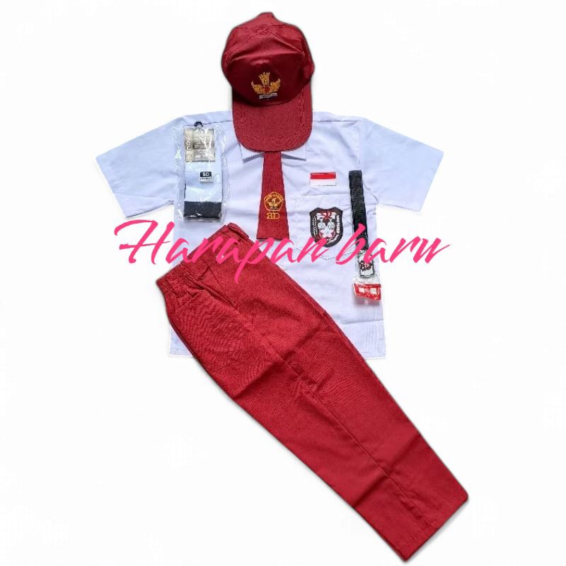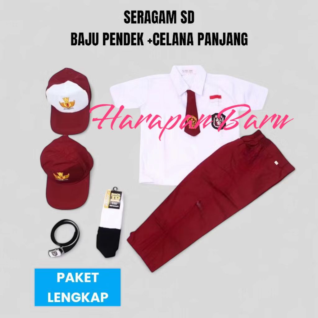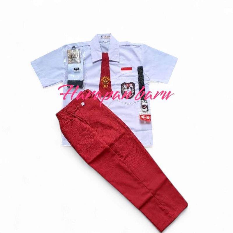 Setelan Seragam Sekolah SD Super Lengkap BAJU PENDEK CELANA PANJANG COWOK