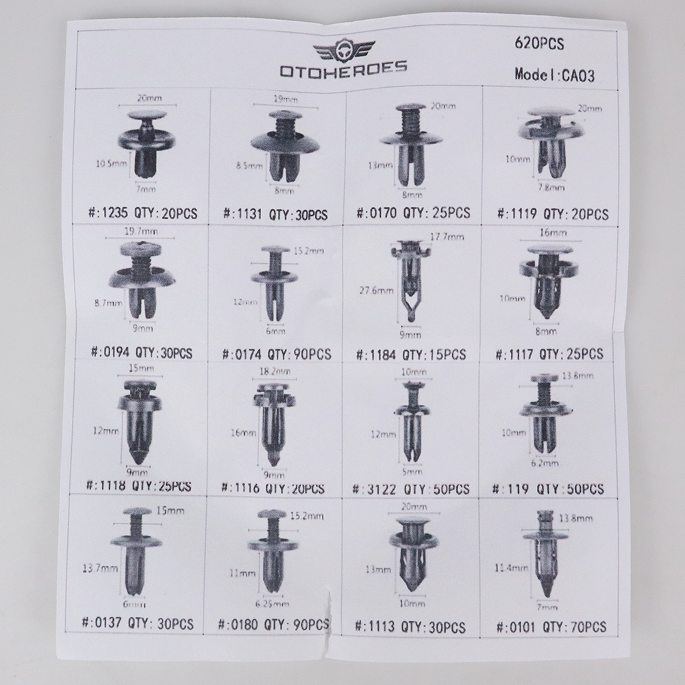 [Star]1240Pcs Baut Rivet Mobil Universal Cable Ties Baut Rivet Plastik 620 klip Kancing Pengencang Body Kendaraan Otomat