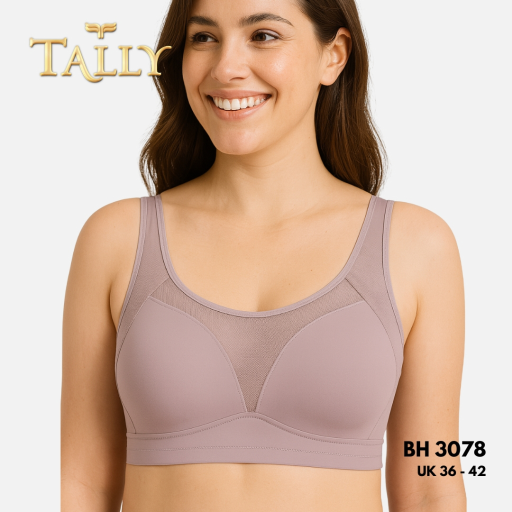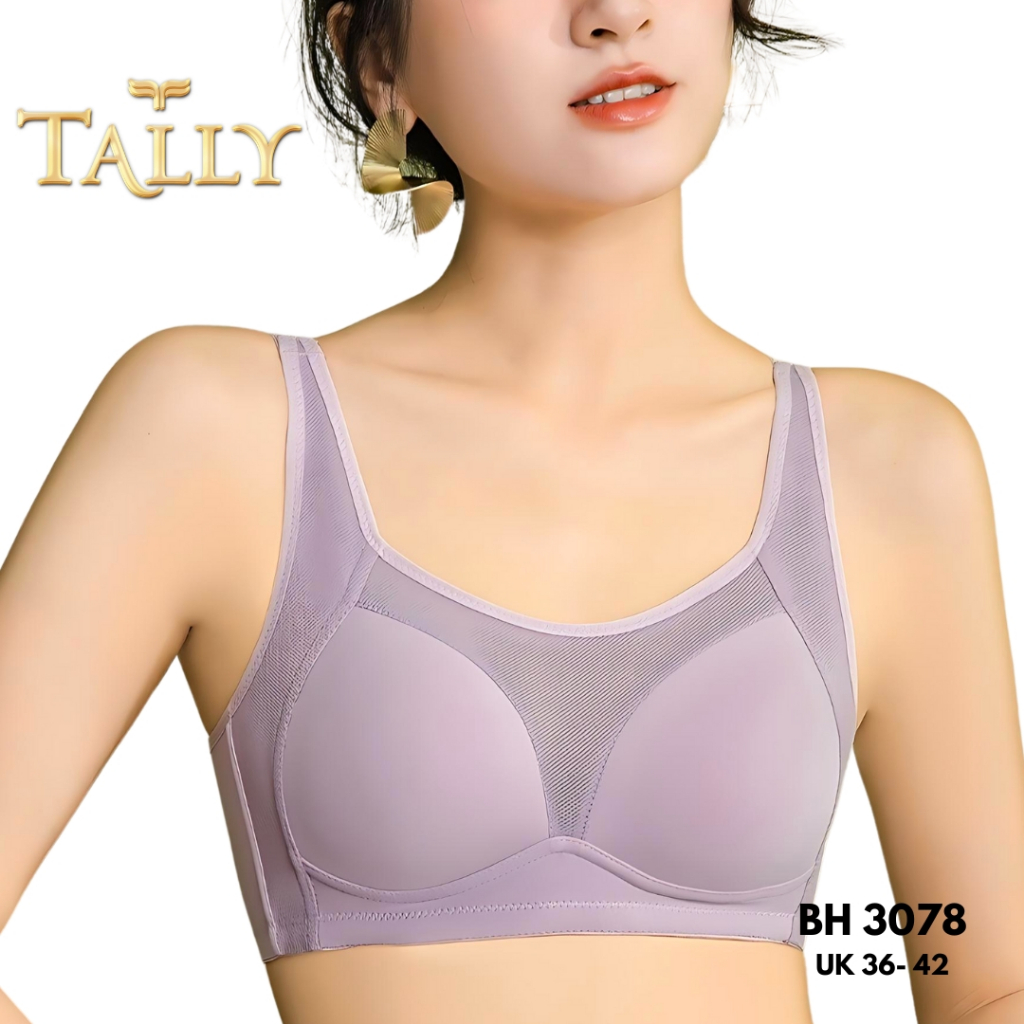 TALLY BH 3078 Bra Wanita Tanpa Kawat Busa Tipis Bahan Katun Pori CUP B Kait 3 Breathable Bra Pakaian Dalam Wanita Lembut dan Nyaman Dipakai
