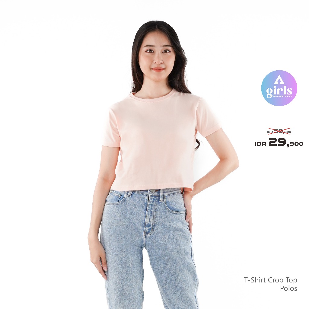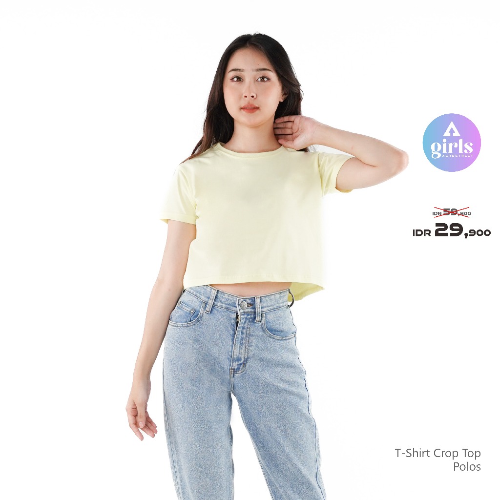 Aerostreet T Shirt Reguler Crop Top Polos Cerah Woman KBC01