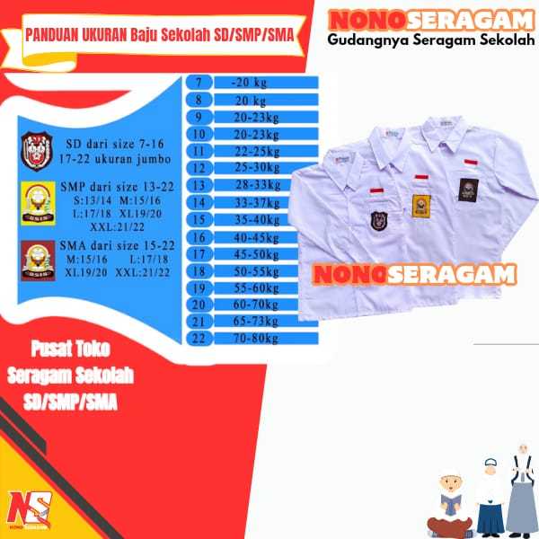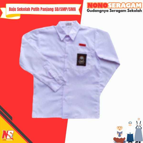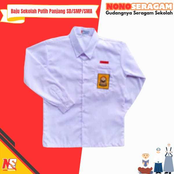 Baju Putih Kemeja Seragam Sekolah SD SMP SMA Lengan PANJANG Putih Tebal Oxford Logo Bordir