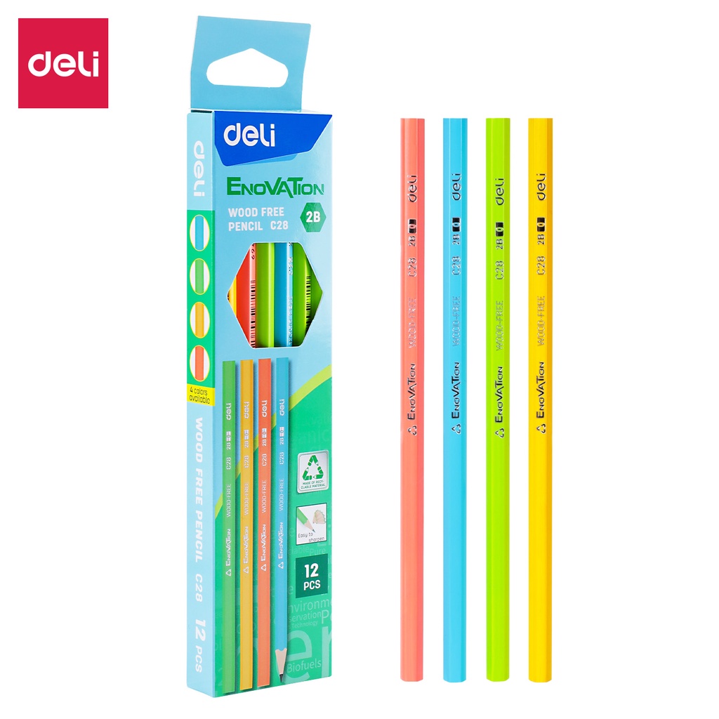 Deli Wood Free Pencil / Pensil 2B Isi 12 Ramah Lingkungan Bahan Daur Ulang EC28