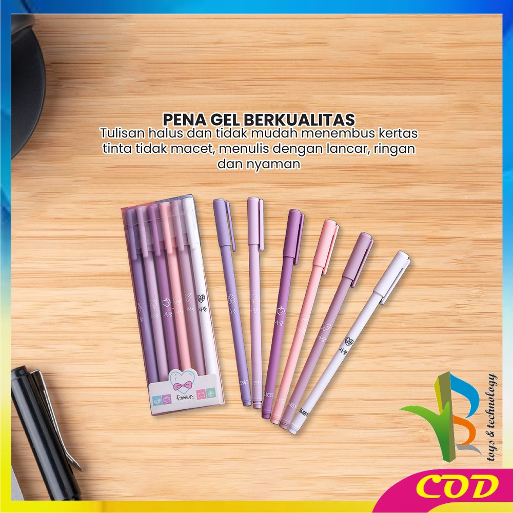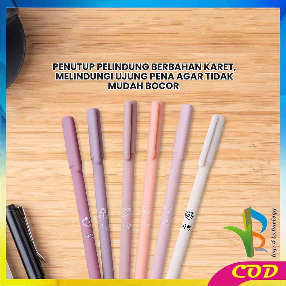 RB-A48 Pulpen Gel 6IN1 Motif Polos Warna Pastel Gaya Korea / Alat Tulis Pena Cair 0.5mm / Pena Rainbow Perlengkapan Sekolah Import