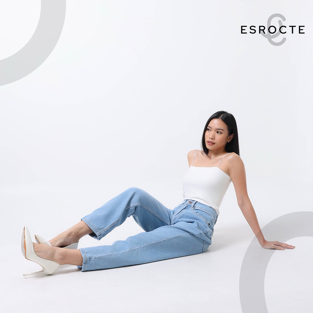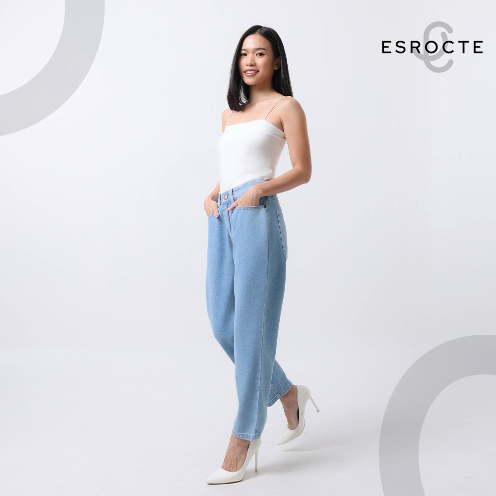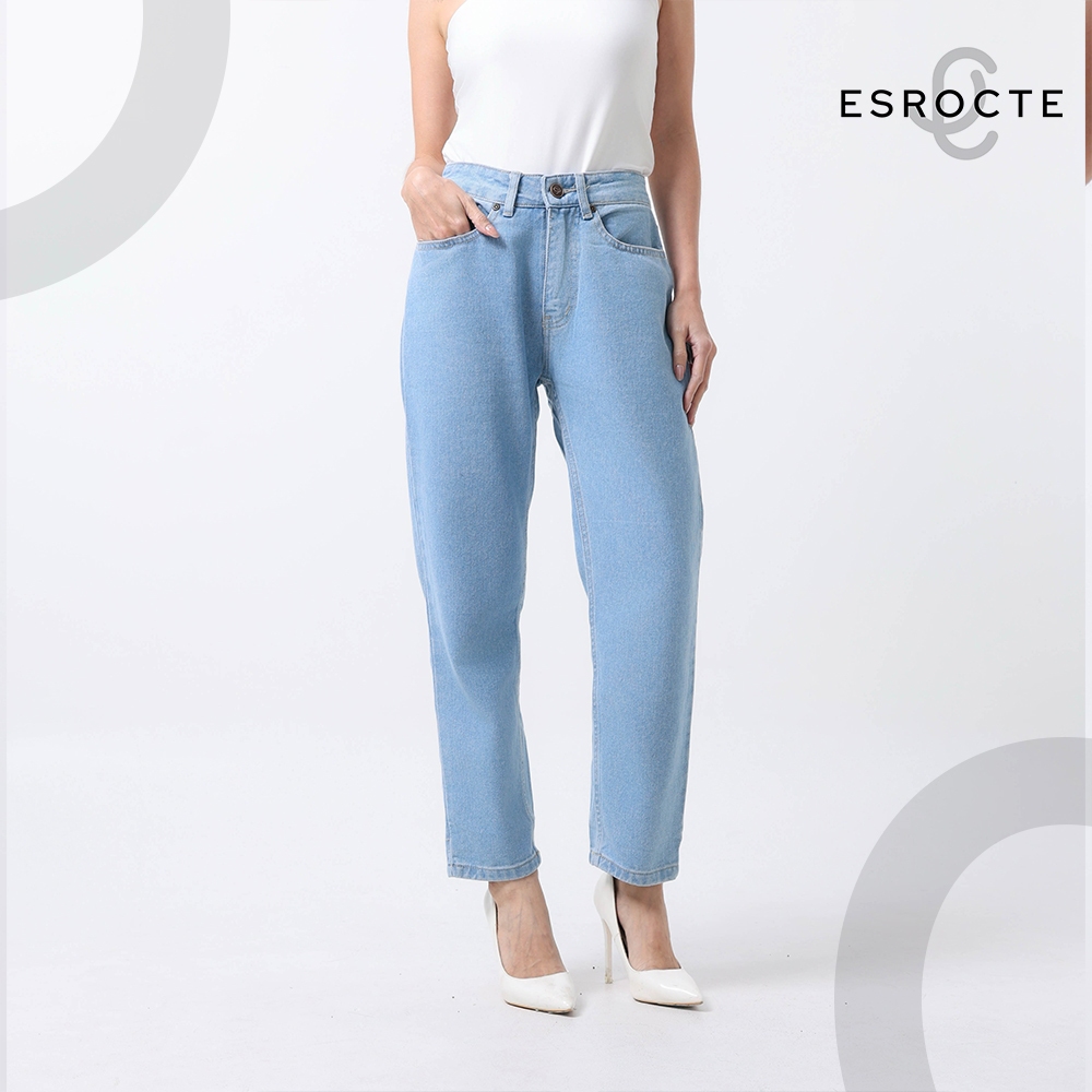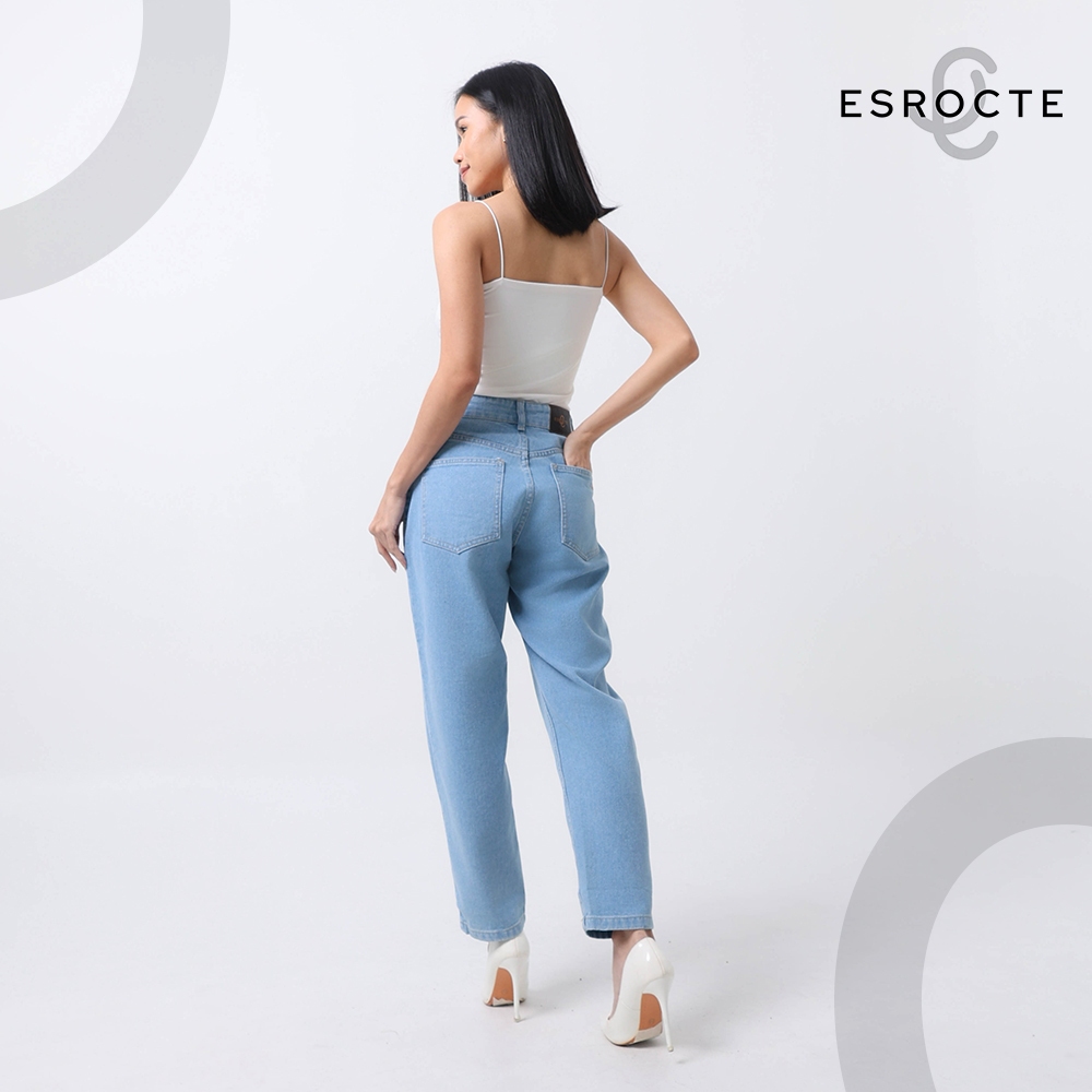 ESROCTE Celana Boyfriend High Waist Mom Jeans Wanita P19 - Biru Folder 26-38