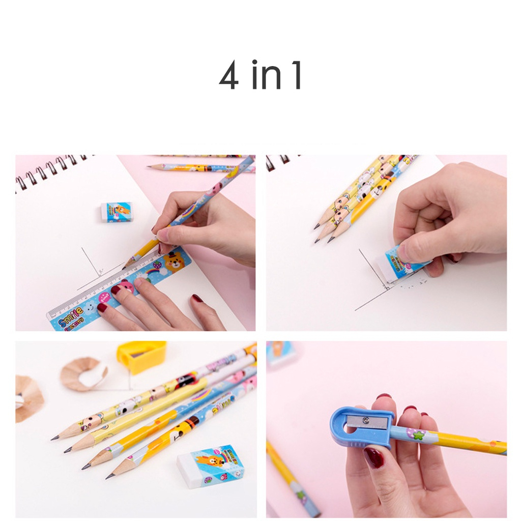 Set Alat Tulis 5in1 Pensil Set Anak Pensil Lucu Dan Penghapus Untuk Tempat Pensil Buku Tulis Sekolah