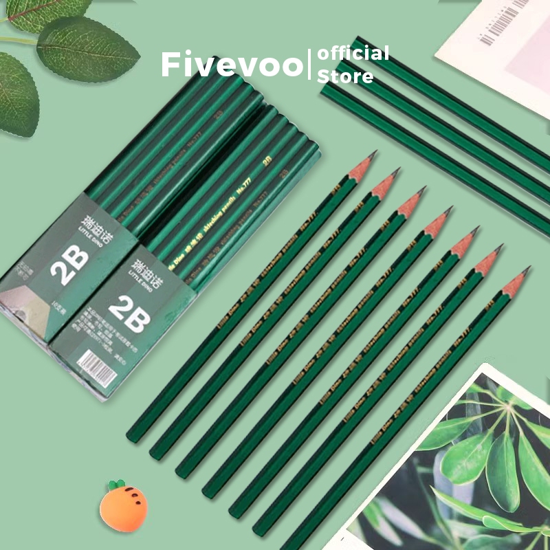 FIVEVOO Pensil 2B HB Pensil Tulis Sekolah 10 pcs / Pensil Ujian / Pensil Sketsa /Charcoal Pensil Set