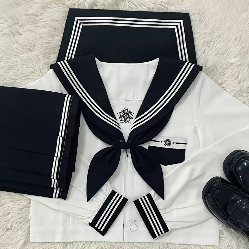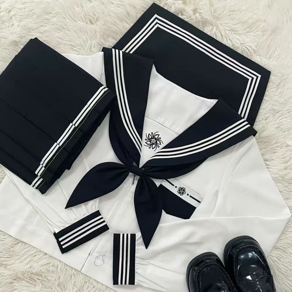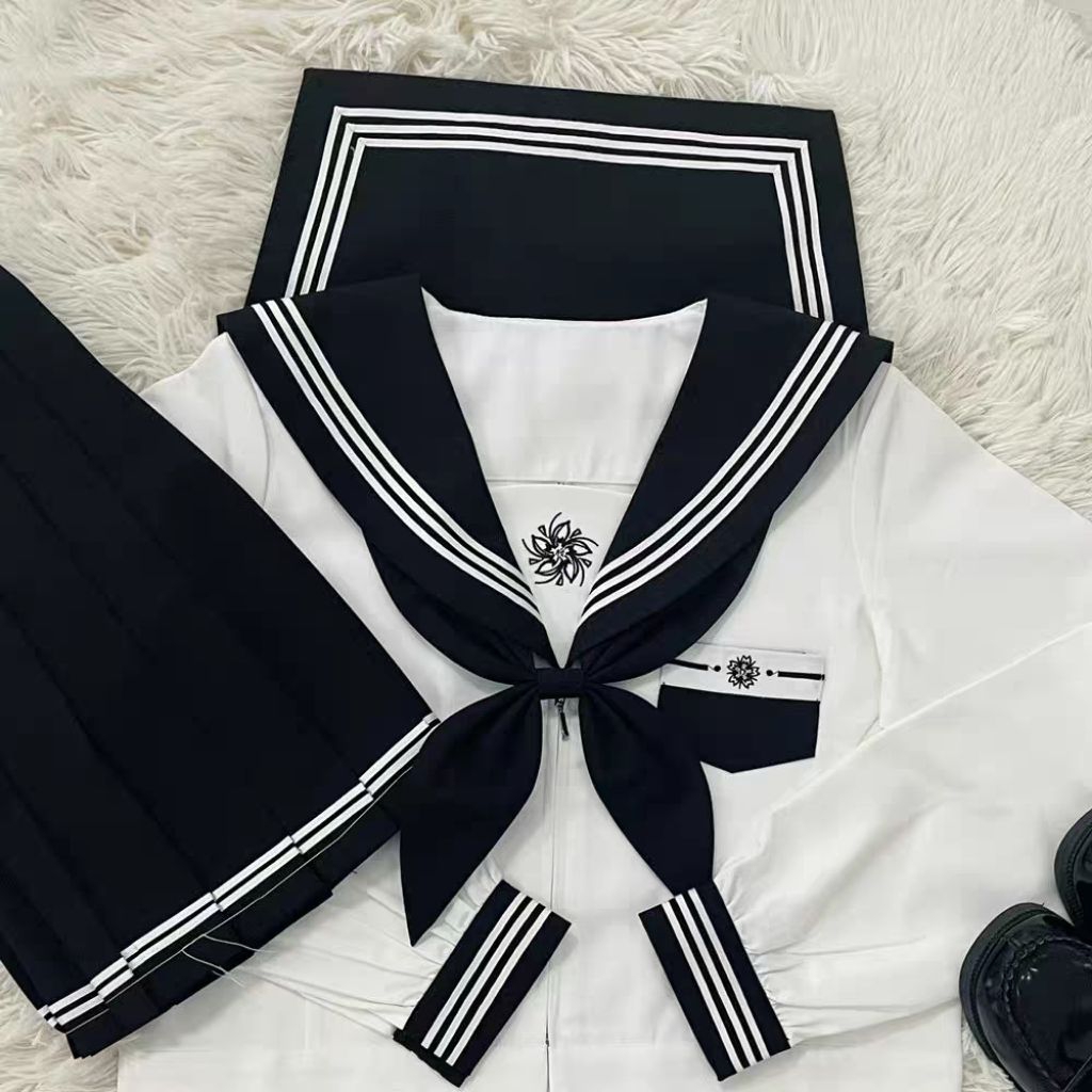 seragam sekolah perempuan jepang hitam putih lengan panjang