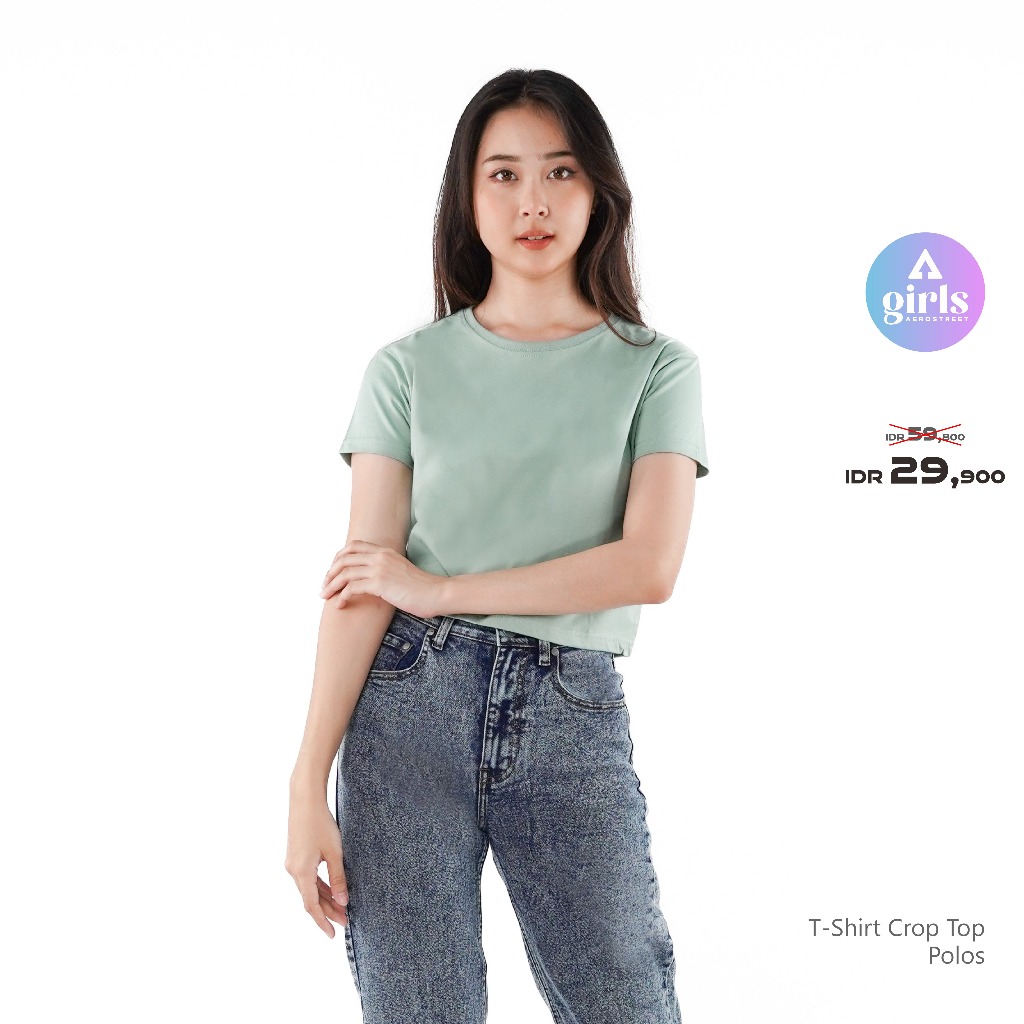 Aerostreet T Shirt Reguler Crop Top Polos Gelap Woman KAC01