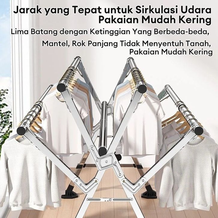 5 Tiangomax Jemuran Baju Lipat Stainless Steel Jemuran Pakaian 160-240Cm Tempat Jemuran Baju Jemuran Hanger Portable