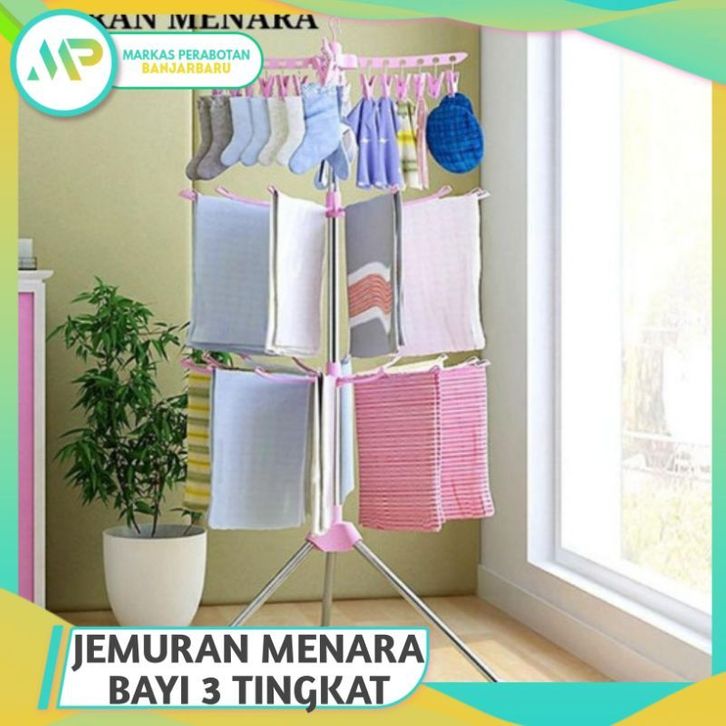 Jemuran Menara 3 Tingkat Portabel / Jemuran Menara Bayi