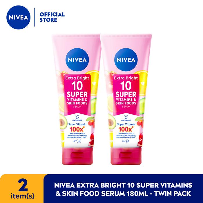 NIVEA Body Serum Extra Bright 10 Super Vitamins & Skin Foods 180ml x2 - NIVEA Extra Bright 10 Super Vitamin