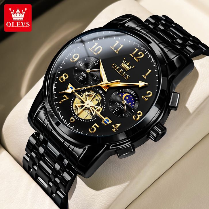 TERLARIS OLEVS JAM TANGAN PRIA ORIGINAL ANTI AIR TAHAN FASHION HITAM ANALOG STAINLESS STEEL WATCH MEN