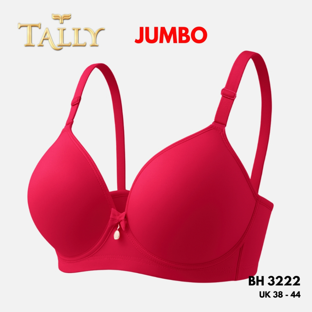 TALLY BH 3222 Bra JUMBO Ada Kawat Bahan Nilon Busa Tipis Cup D - E Kait 3 Bra Cup BIG SIZE Lembut dan Nyaman