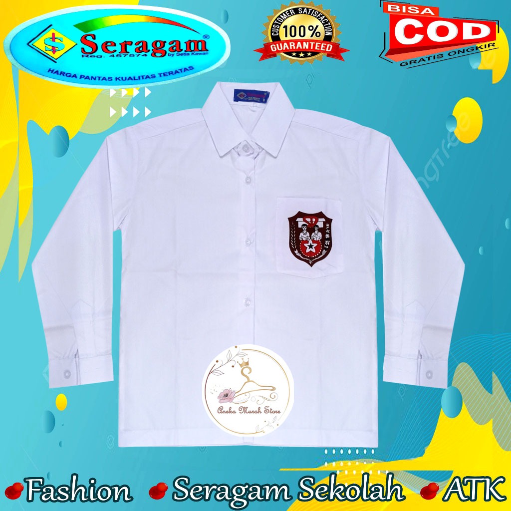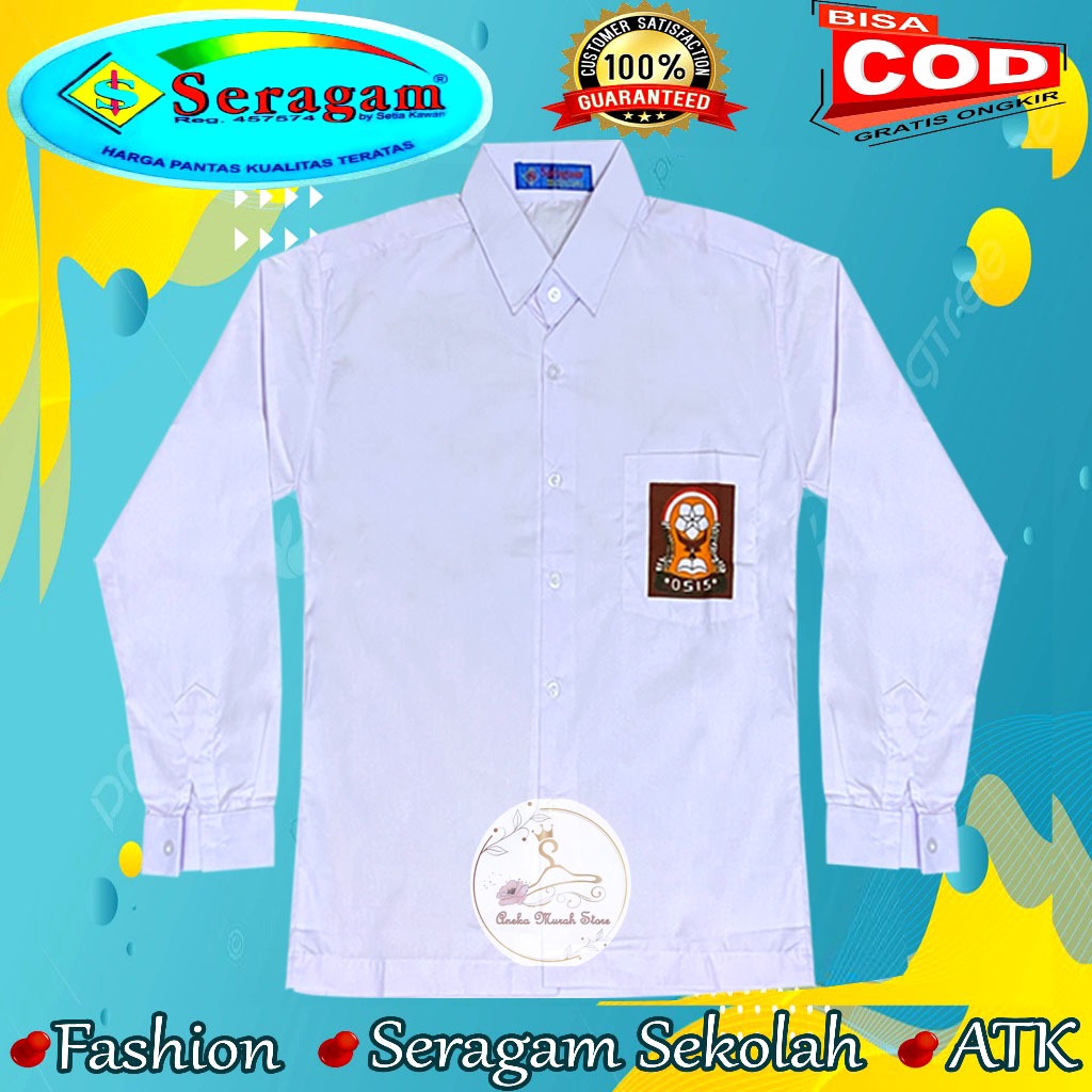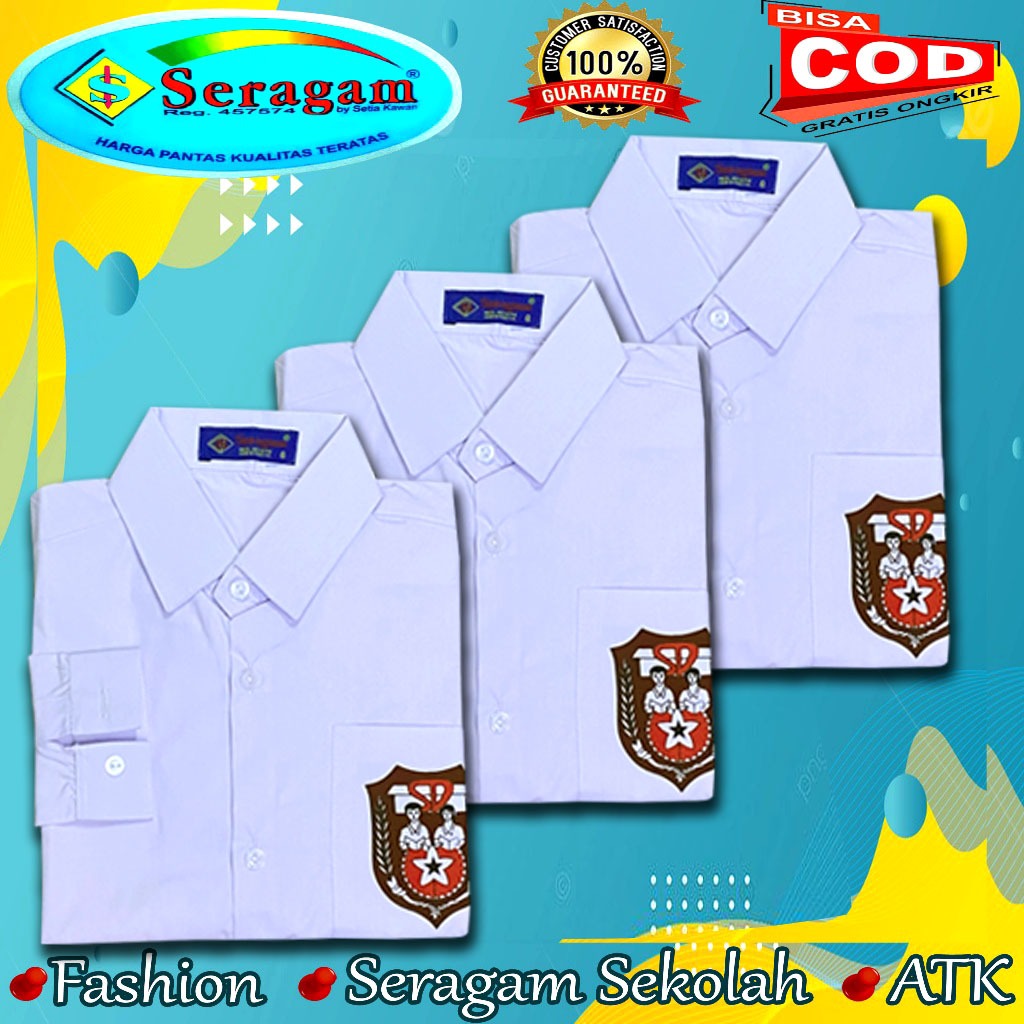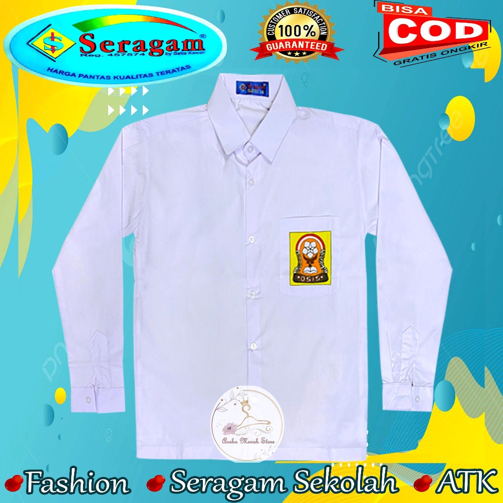 Seragam Sekolah Baju SD SMP SMA Putih Lengan Panjang Pakai Logo Ukuran 7 sampai 20 Merek Seragam