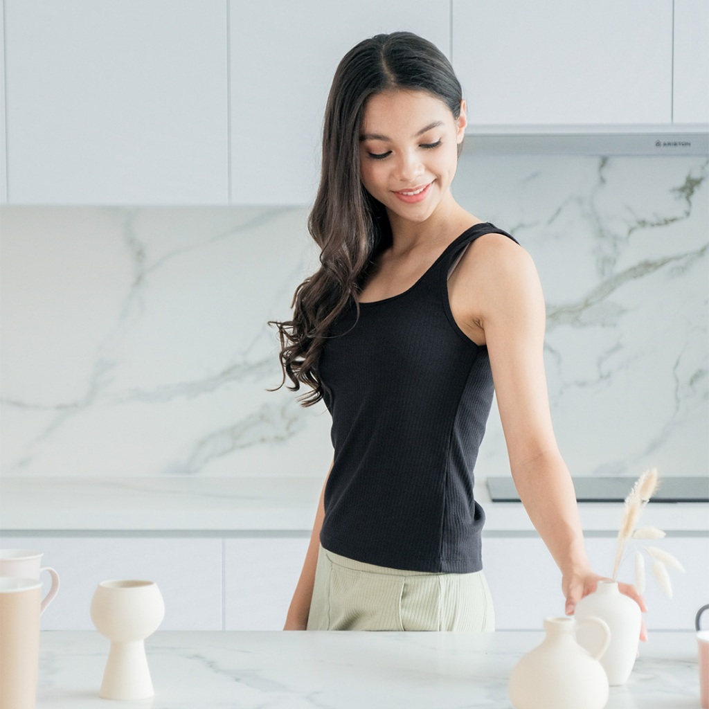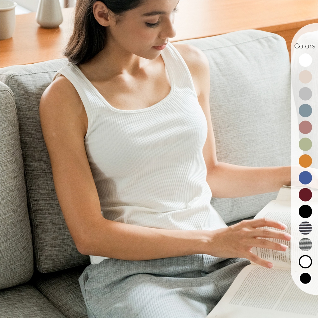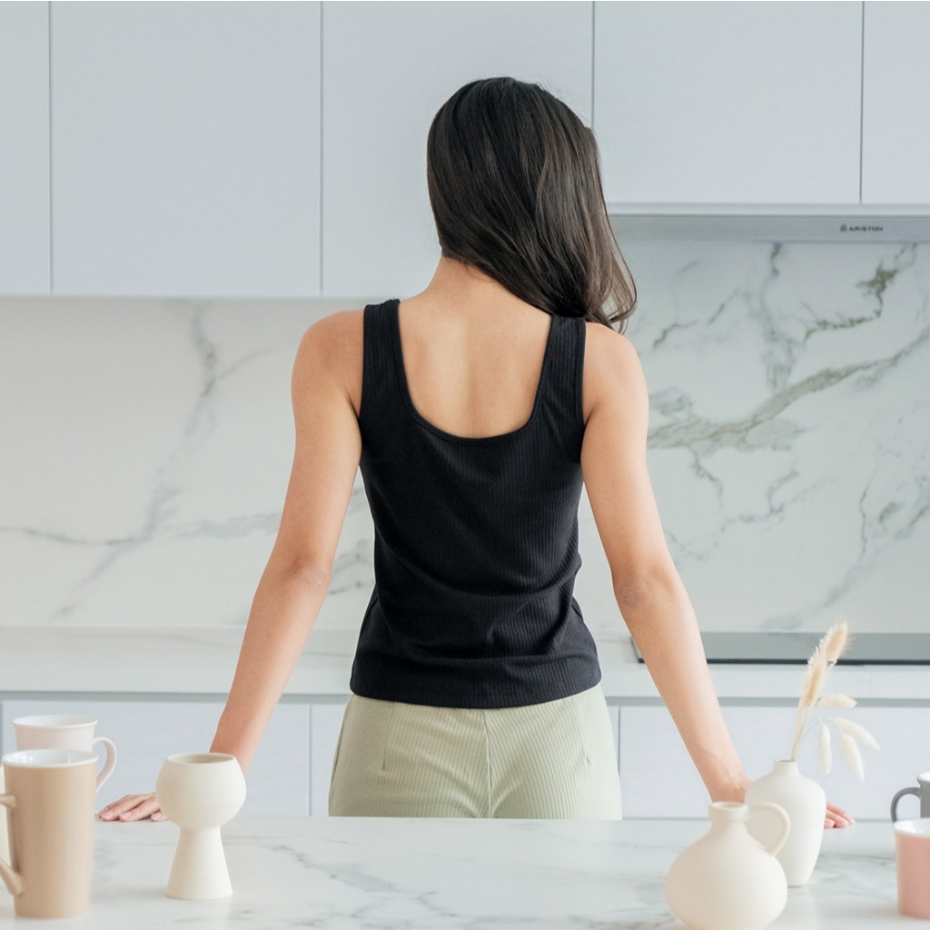 Isla Basic Tanktop Thick Strap Square Neck Stretch - Tanktop Kekinian - Pakaian Wanita - Inner - Singlet - Tank top