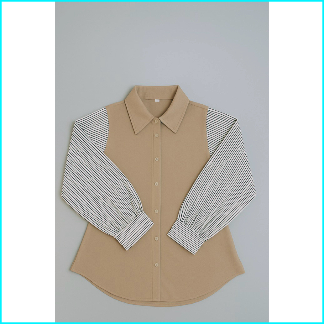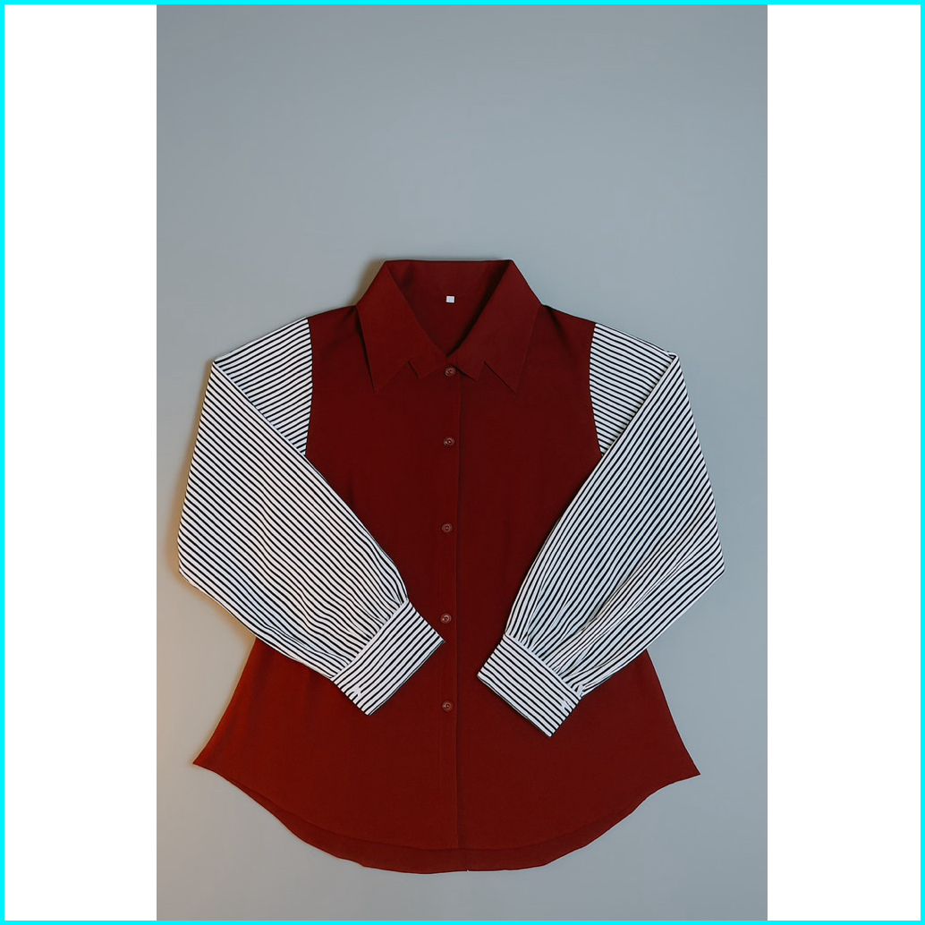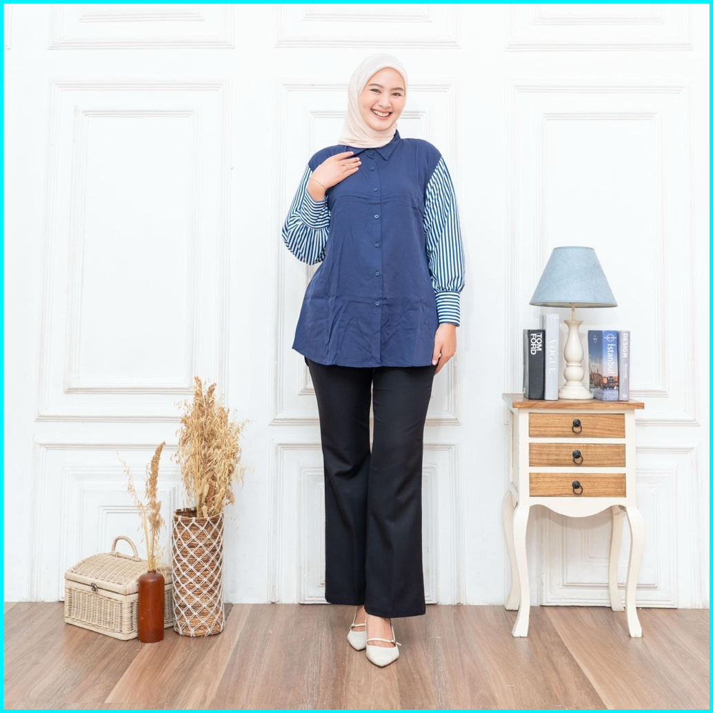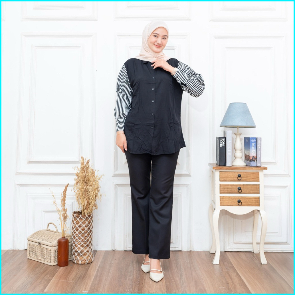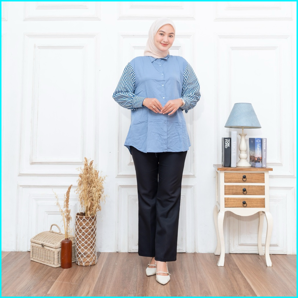 Bigsaleplus Blouse Jumbo Rayon Twill Kombinasi Salur Kemeja Formal Kombinasi Strip Katun Cantik