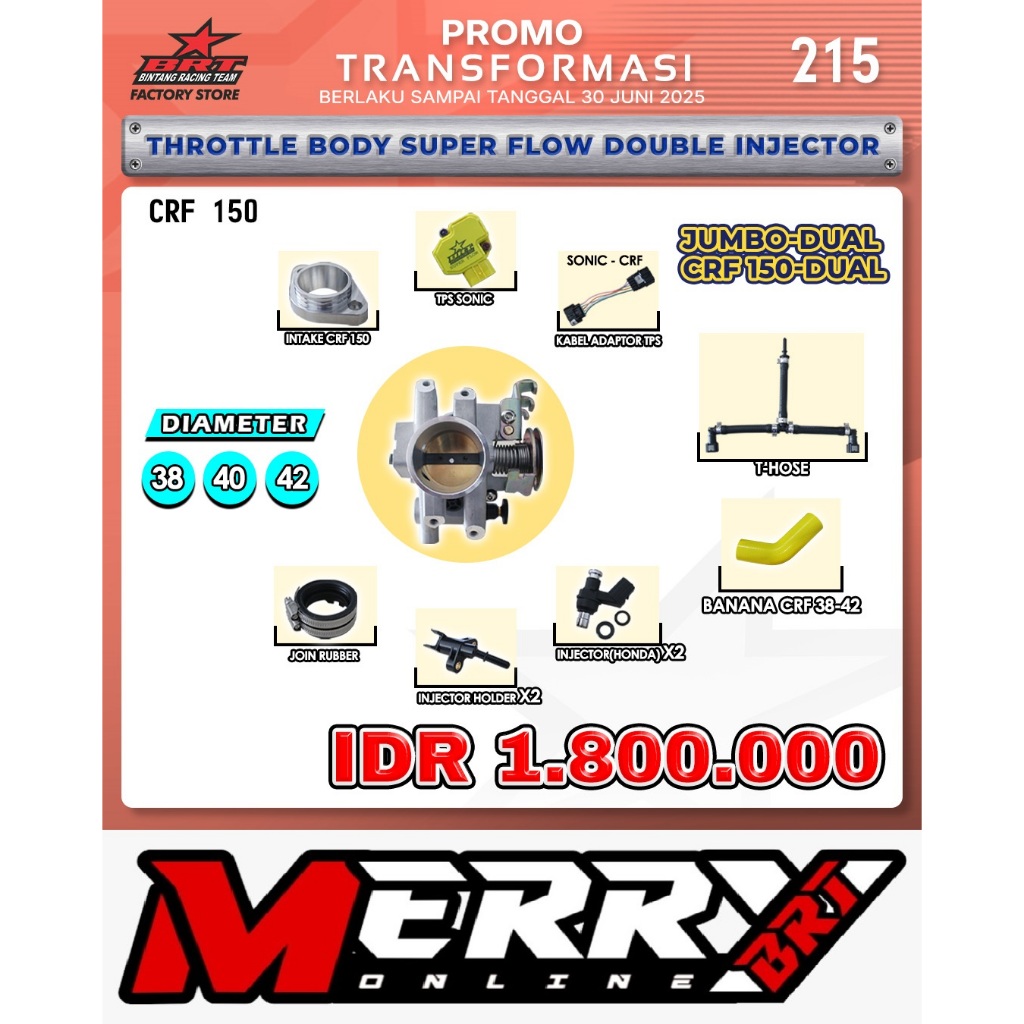 Promo 215 Throttle Body Brt Tb Dual Injektor Super Flow Special Jumbo 38 40 42 Crf - Universal