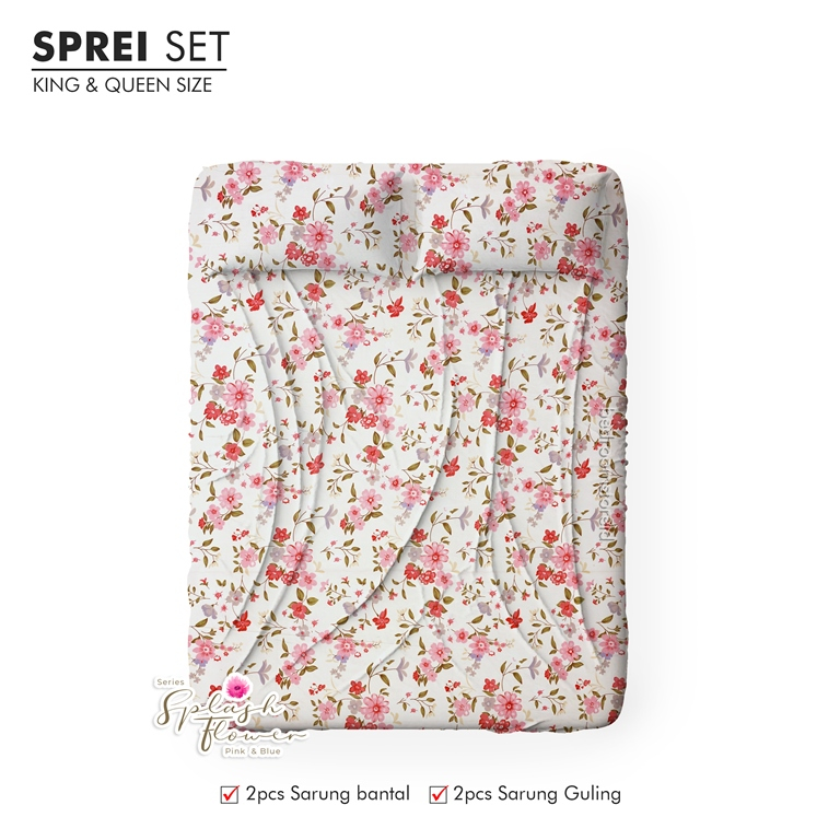 Sprei Aesthetic Motif Splash Flower Pink Sudut Karet Set Bantal Guling