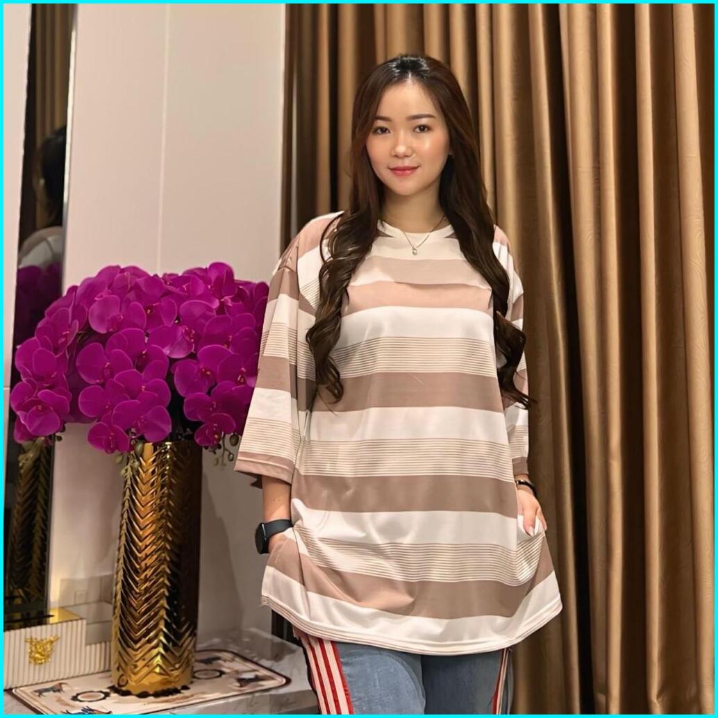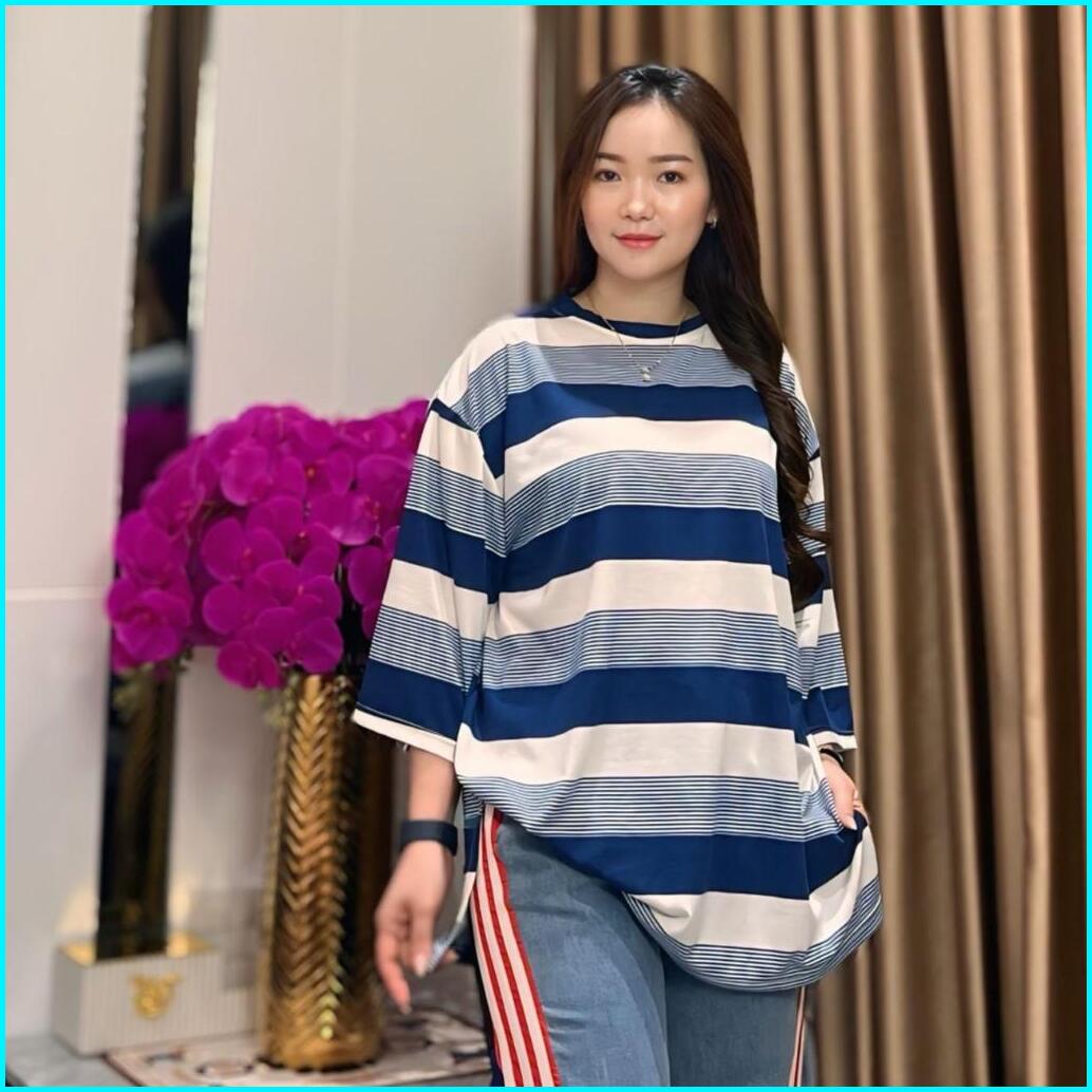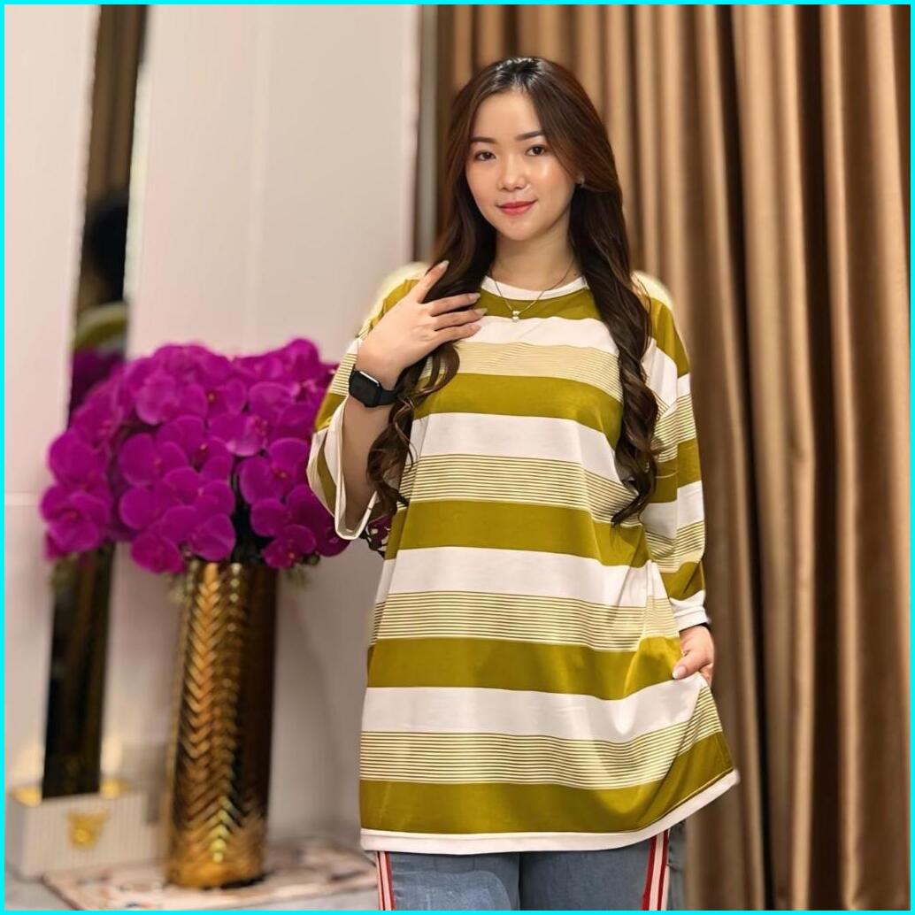 Atasan Wanita Oversize Ld 135 Cm Kaos Wanita Jumbo Sr5321 Atasan Motif Full Print Atasan Salur Lengan 3 4