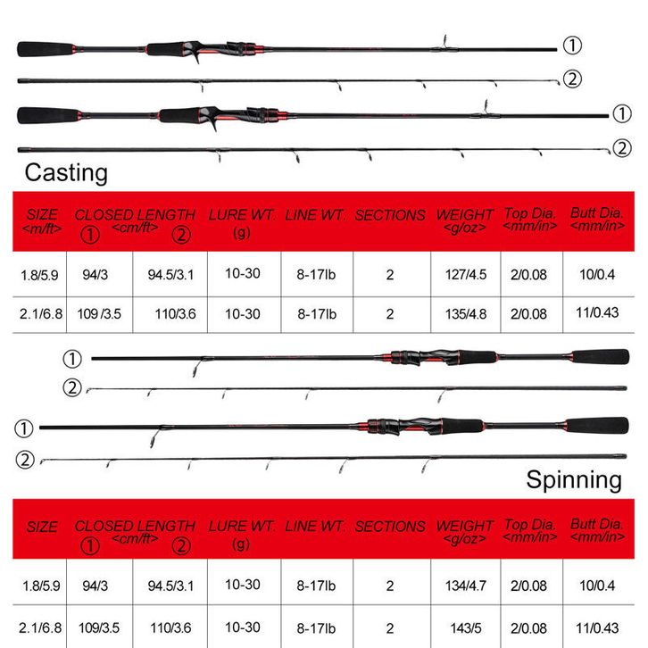 MUXI Joran Pancing Laut Dan Air Tawar Pancingan Carbon Sutet 2 Bagian Tongkat Pancing Putar UL Power 180cm 210cm