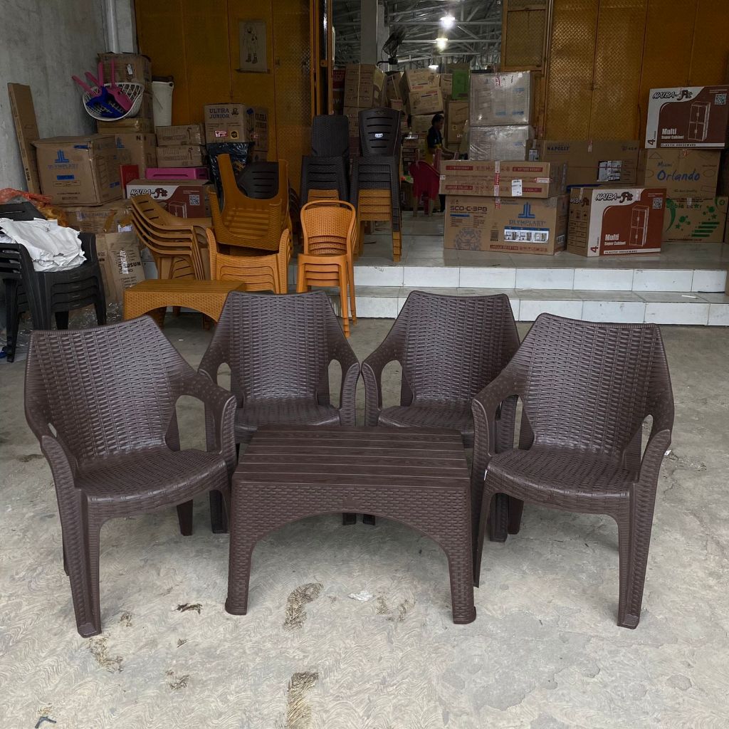 Kursi Plastik Napolly Sandaran /Kursi Plastik Set 4 Kursi 1 Meja /Kursi Bakso / Kursi Teras Depan Rumah Rotan