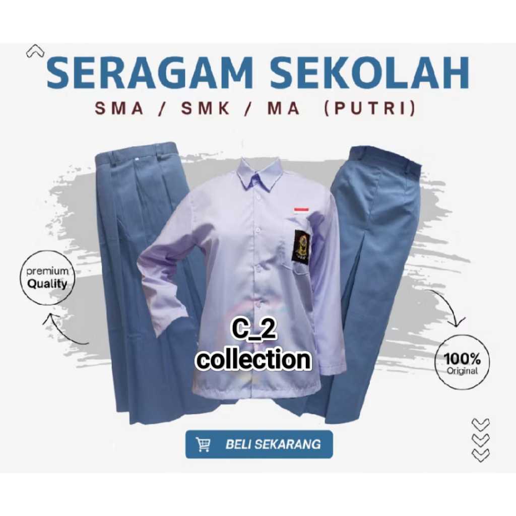 setelan seragam sekolah SMA/smk PUTIH - ABU perempuan baju lengan panjang & ROK SPAN 1