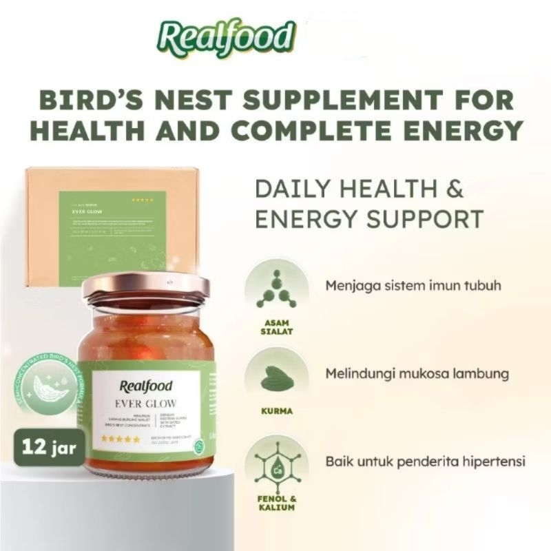 Realfood Ever Glow Rasa Kurma 12 Jar ( Minuman Bird Nest Sarang Burung Walet )