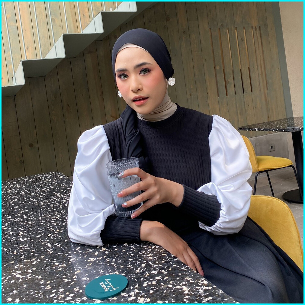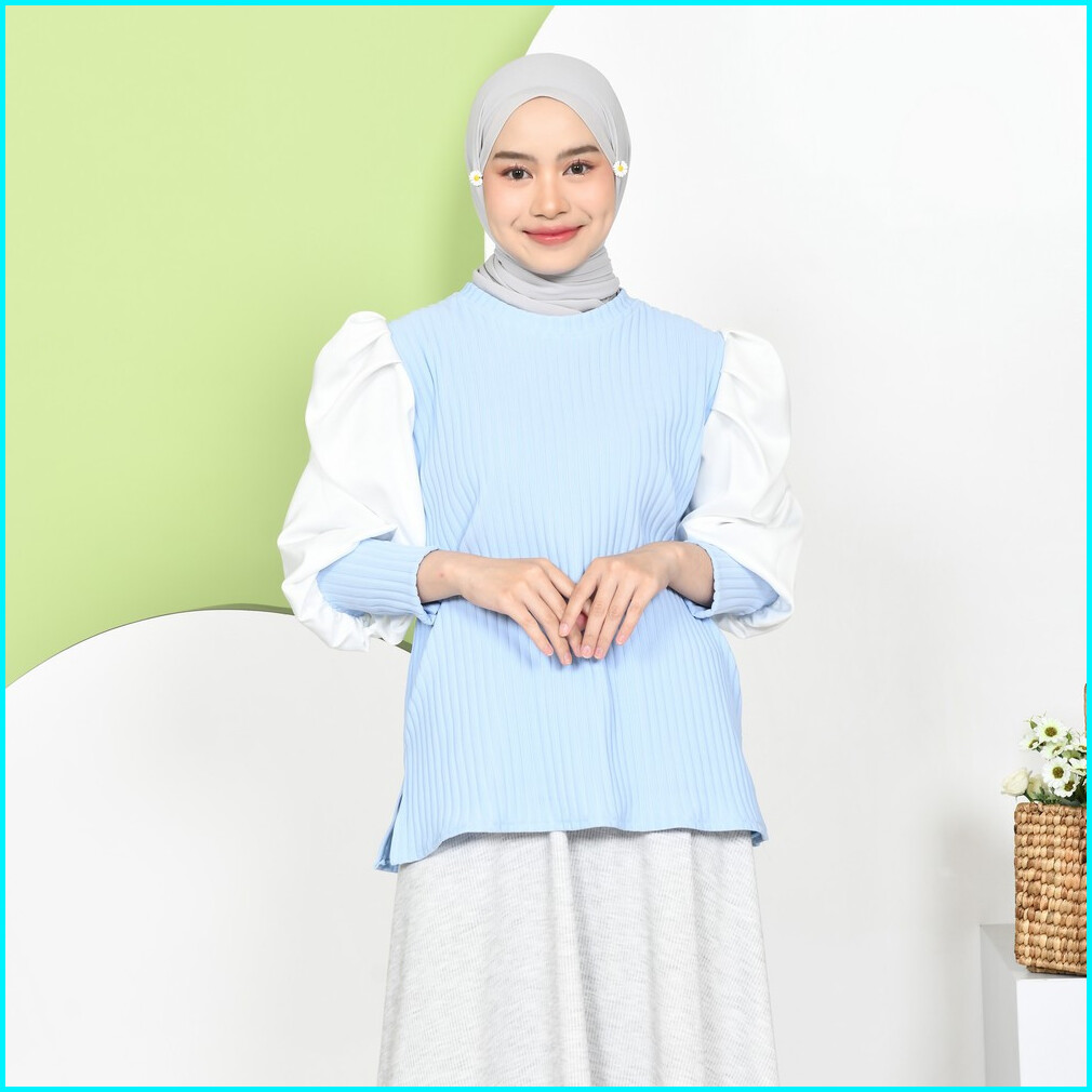Blouse Knit Puff Mix Satin Kemeja Lengan Balon Blouse Korean Style Blouse Viral 2024