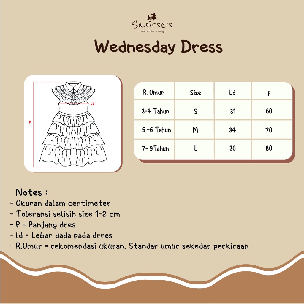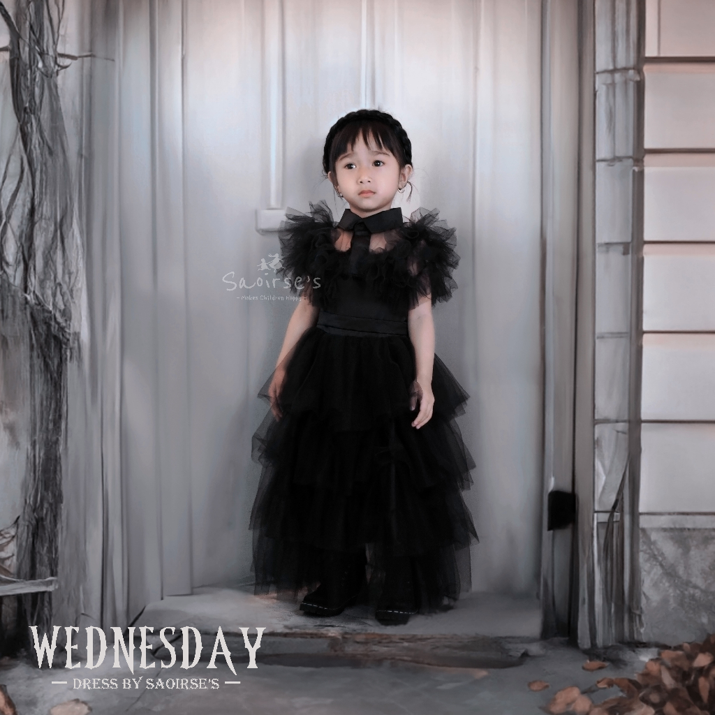 SAOIRSE'S Wednesday Dress - Kostum Helloween Tulle Anak Balita Gaun Cosplay