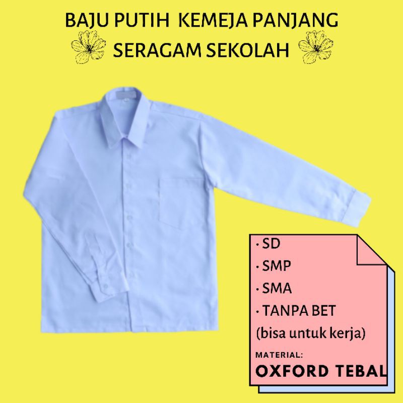 BAJU SERAGAM SEKOLAH PUTIH PANJANG / SD / SMP / SMA baju putih kerja / kemeja putih / hem