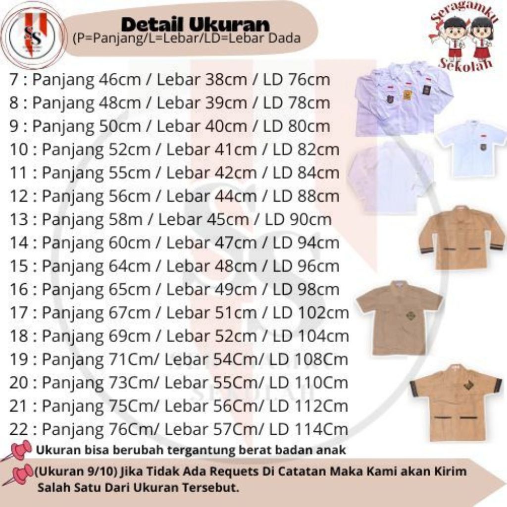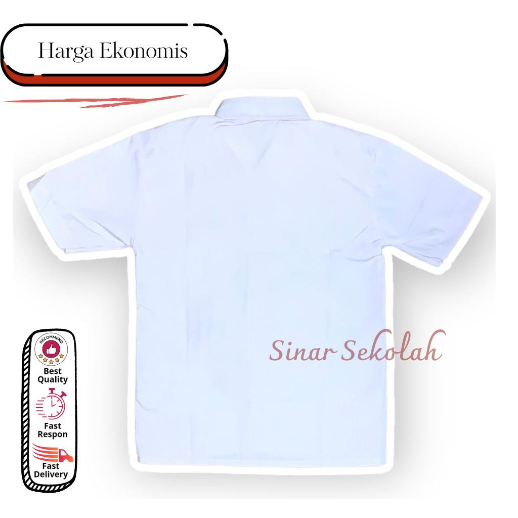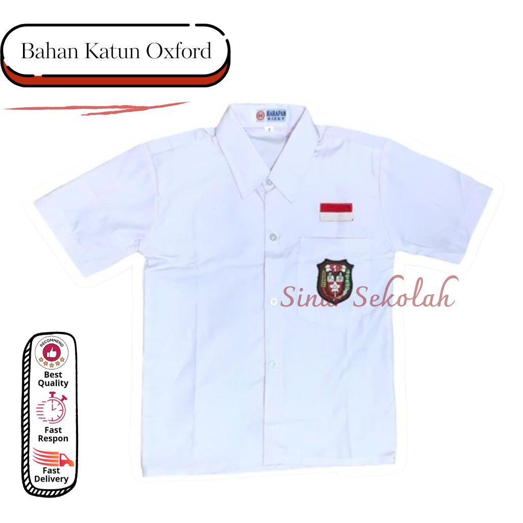Seragam Sekolah SD SMP SMA Kemeja Putih Baju Atasan Lengan Pendek Bet Bordir Kain Oxford