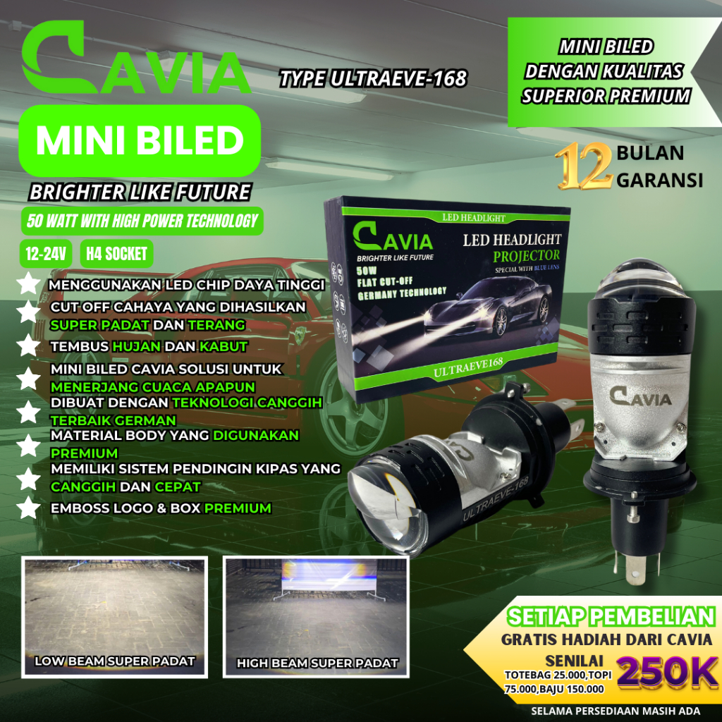 LAMPU LED MINI PROJIE PROJECTOR BILED LASER SOCKET H4 HI/LO LASER 50W MOTOR MOBIL
