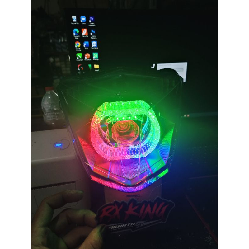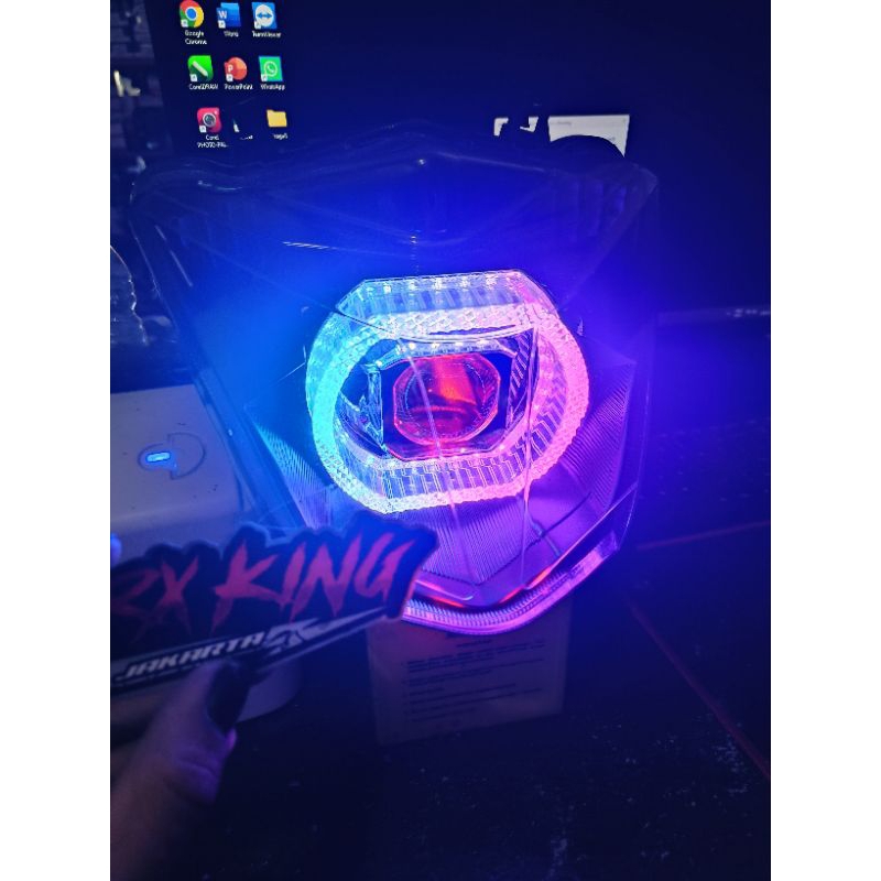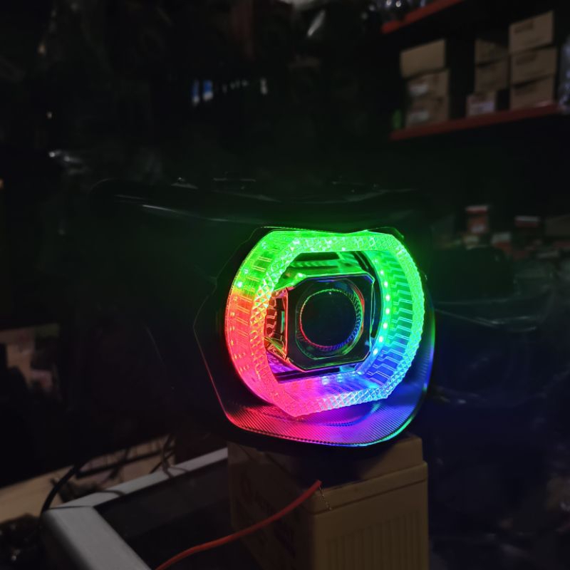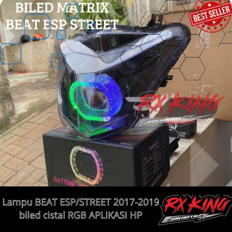 [Star] REFLEKTOR LAMPU DEPAN BEAT ESP/STREET 2017-2019 BILLED MATRIX 3INC RGB CRISTAL APLIKASI 55WATT