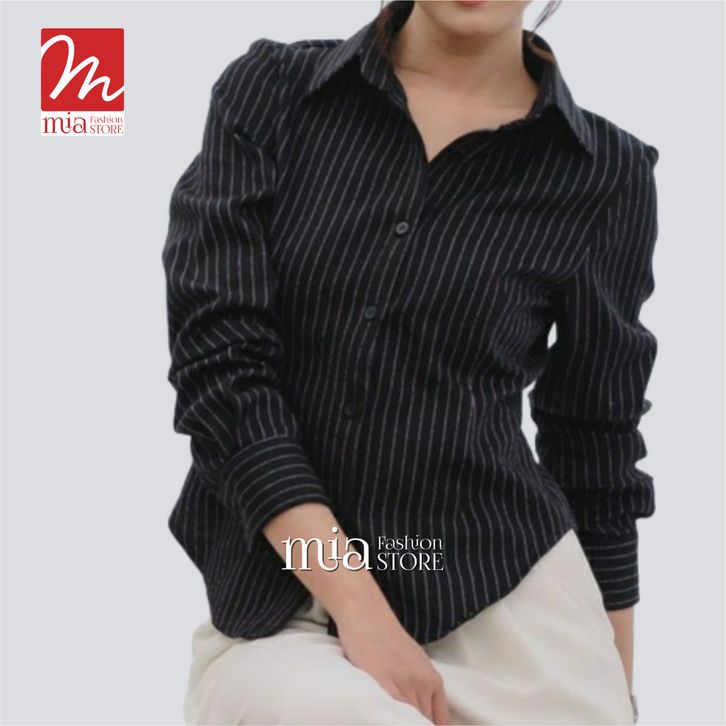 TERBARU Kemeja Luna Stripe Longsleeve Atasan Wanita Salur Terbaru enormn