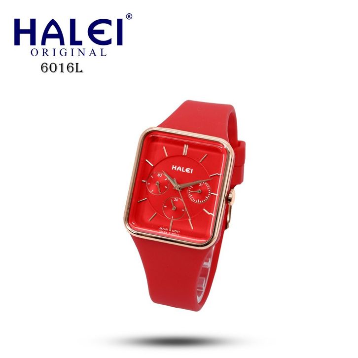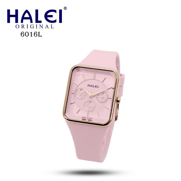 TERLARIS HALEI 6016 L JAM TANGAN WANITA HALEI ORIGINAL ELEGAN ANTI AIR STRAP SILIKON CRONO MULTIFUNGSI ANALOG