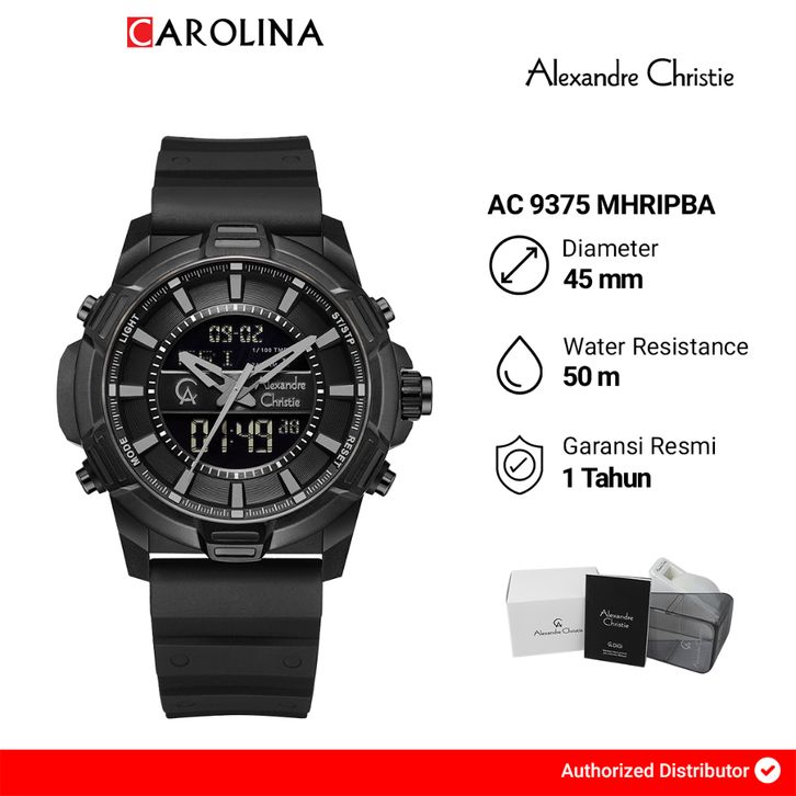 TERLARIS JAM TANGAN PRIA ALEXANDRE CHRISTIE DIGITAL ANALOG AC 9375 MHRIPBA BLACK DIAL BLACK RUBBER STRAP