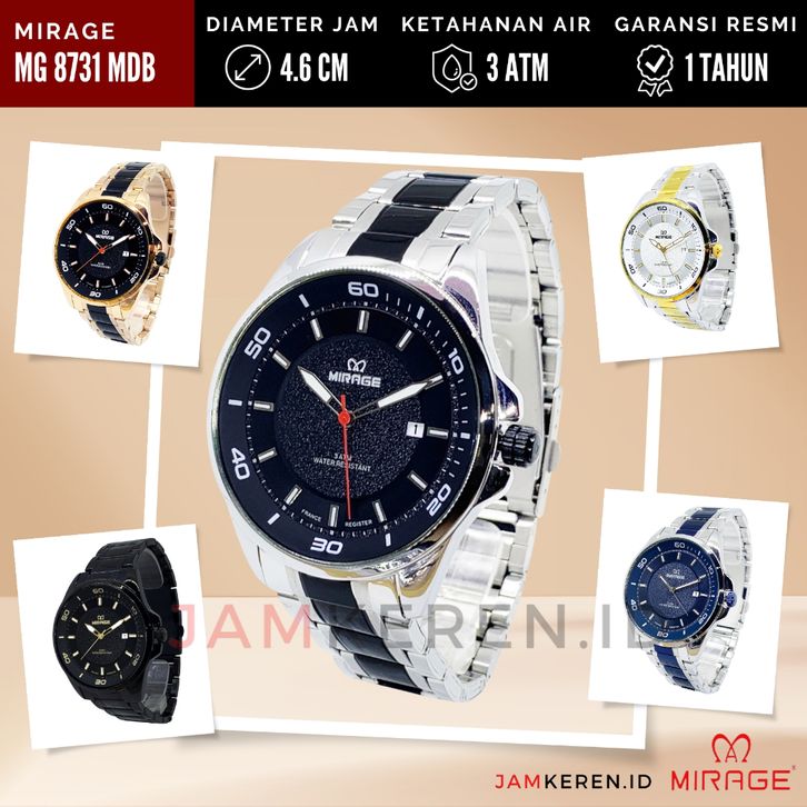 TERLARIS JAMKEREN MIRAGE 8731 M JAM TANGAN PRIA STAINLESS STEEL ORIGINAL GARANSI RESMI ANTI AIR ELEGAN SPORTY