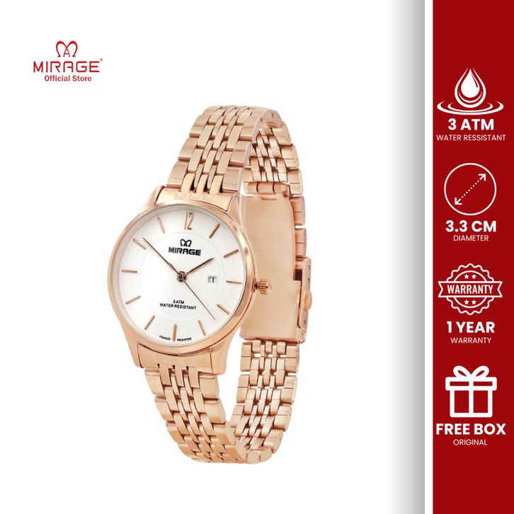 TERLARIS MIRAGE JAM TANGAN WANITA ORIGINAL STAINLES ROSE MEWAH FORMAL 8647 L ANALOG ANTI KARAT BERGARANSI