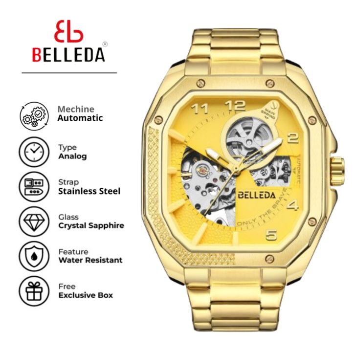 TERLARIS JAM TANGAN PRIA BELLEDA 9528 AUTOMATIC STAINLESS STEEL GARANSI ORIGINAL ANTI AIR 30 METER WATCHES