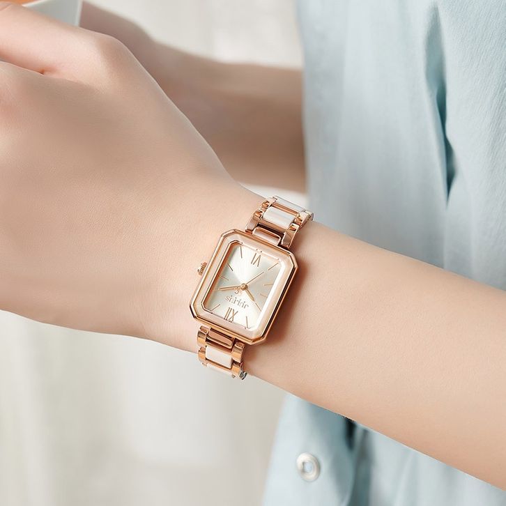 TERLARIS JULIUS KOREA KOREA SQUARE WHITE CERAMIC WATCH WANITA FASHION WATERPROOF QUARTZ WATCH JA-1273