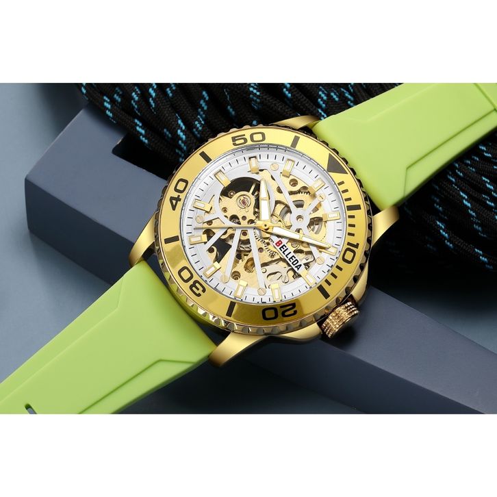 TERLARIS PROMO JAM TANGAN PRIA BELLEDA 9485 OTOMATIS STRAP RUBBER ORI BERGARANSI TAHAN AIR 30M SMILE®️