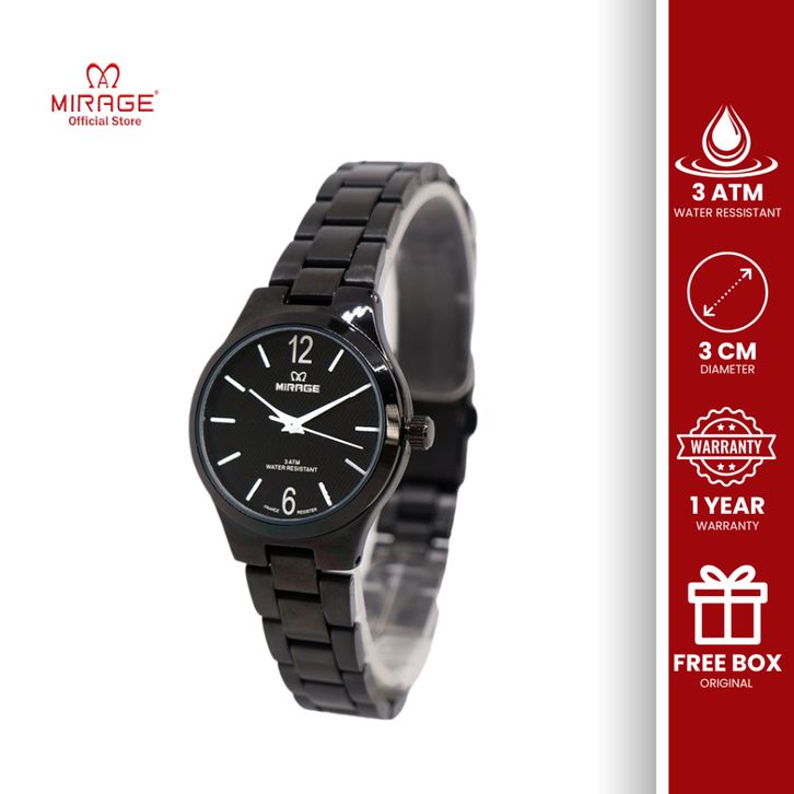 TERLARIS MIRAGE JAM TANGAN ORIGINAL WANITA HITAM MEWAH 18604 L ANALOG TAHAN AIR ANTI KARAT GARANSI 1 TAHUN