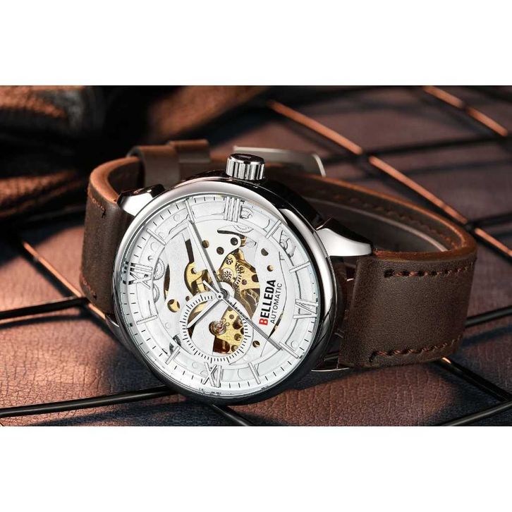 TERLARIS JAM TANGAN PRIA BELLEDA 9471 AUTOMATIC SERIES TALI KULIT ANTI AIR 30 METER ORIGINAL WATCH